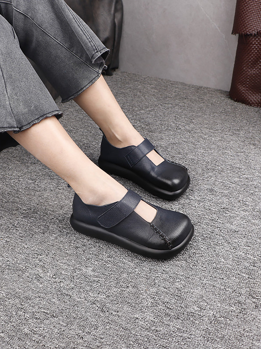 Sapatos femininos vintage de couro genuíno com bico quadrado