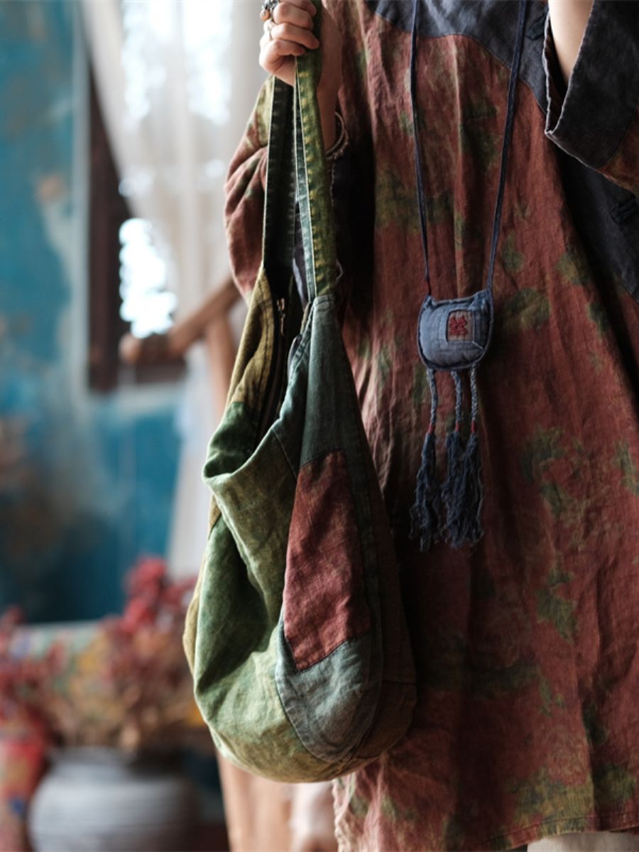 Bolsa de ombro de algodão patchwork vintage