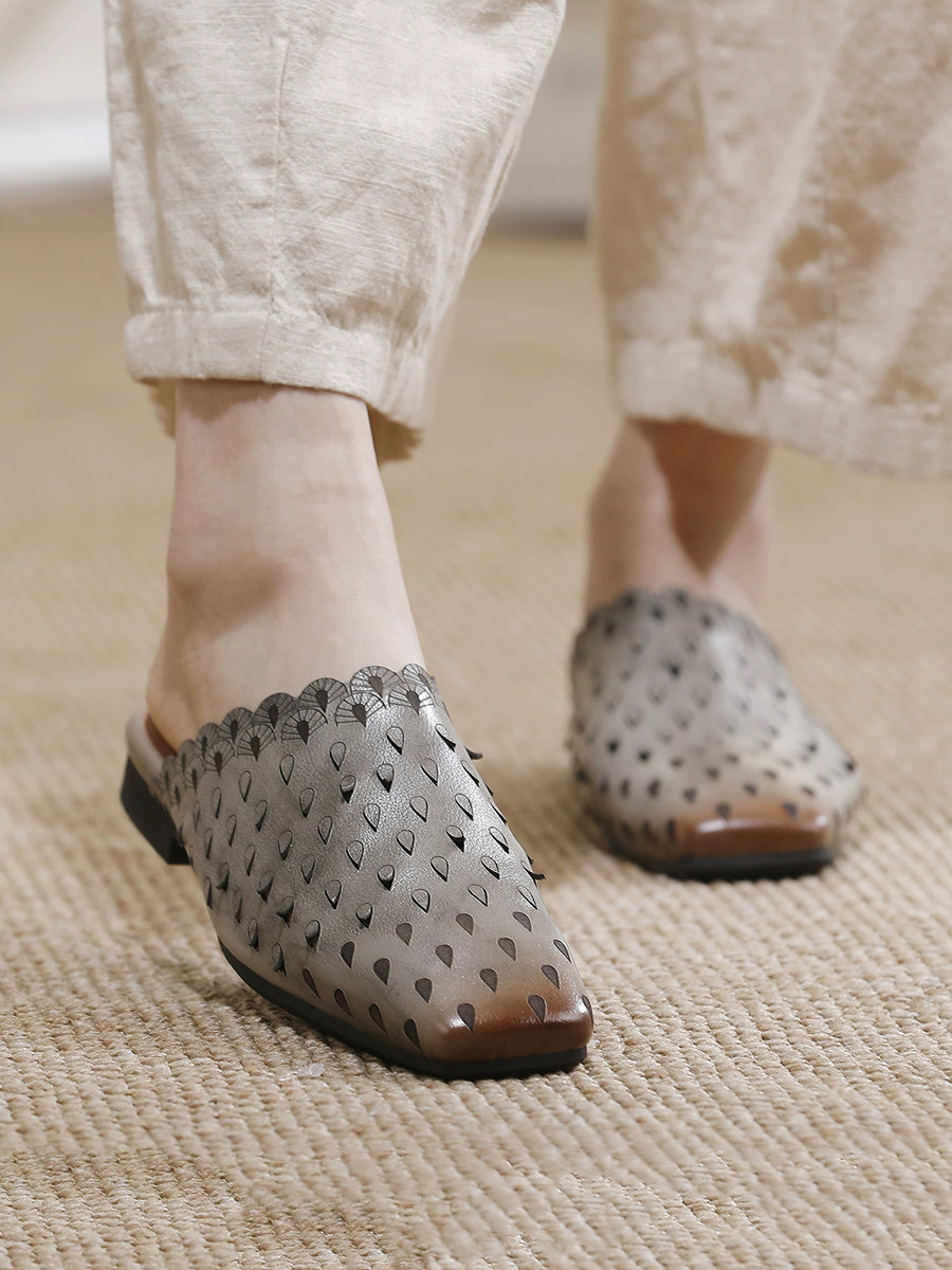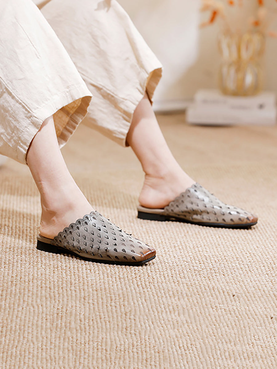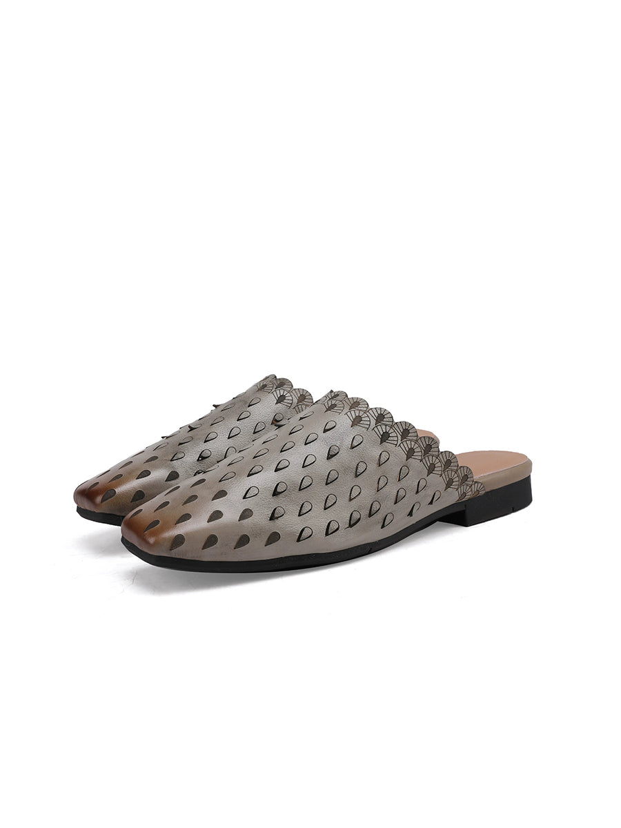 Chinelo feminino vintage de couro vazado