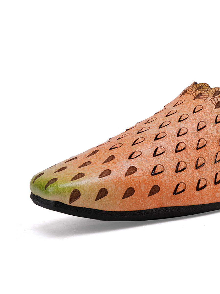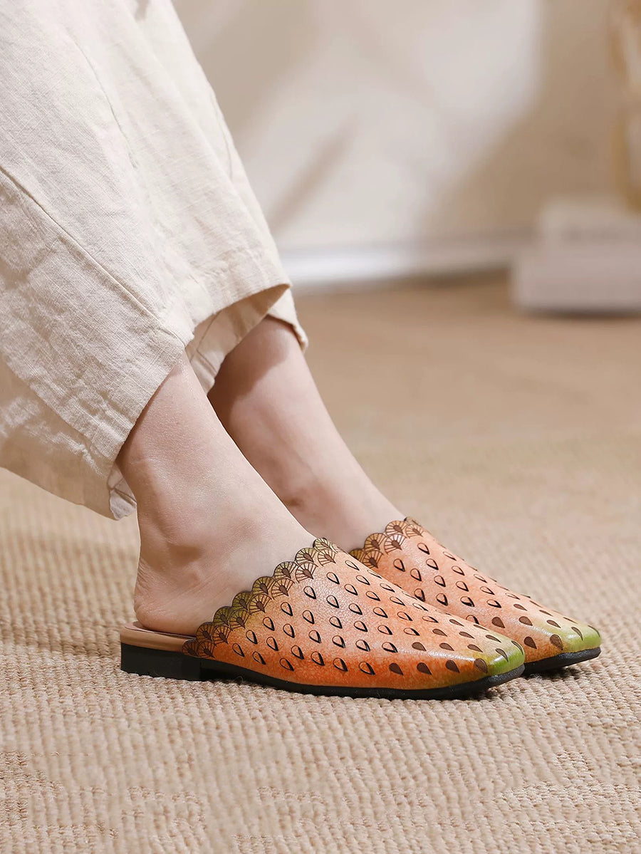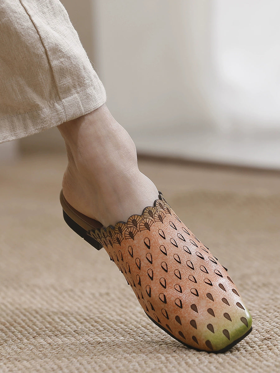 Chinelo feminino vintage de couro vazado
