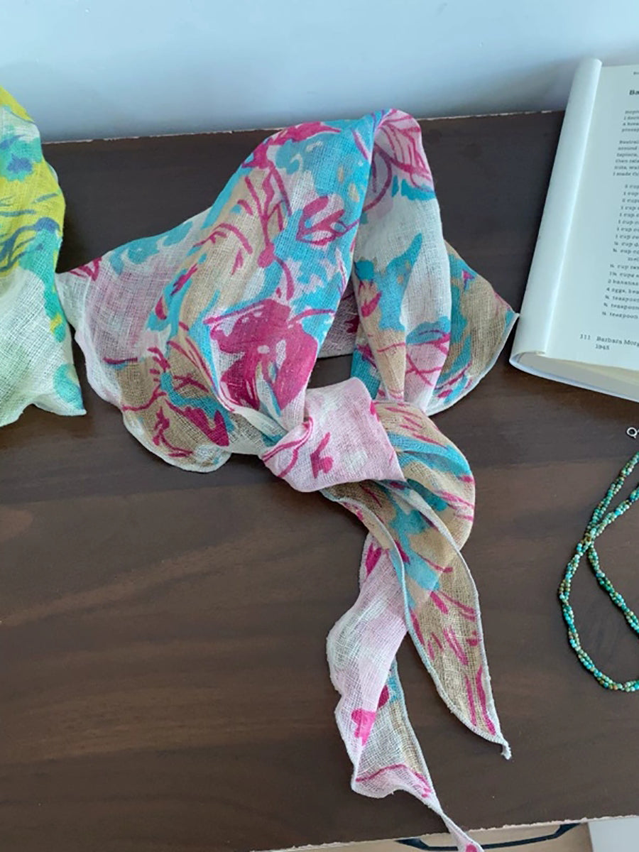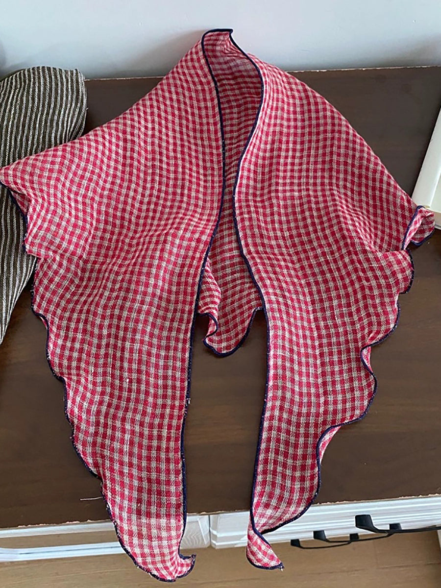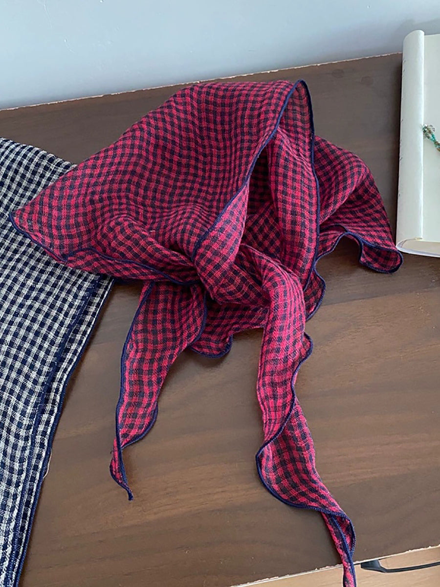 Lenço fino feminino vintage xadrez 100% linho