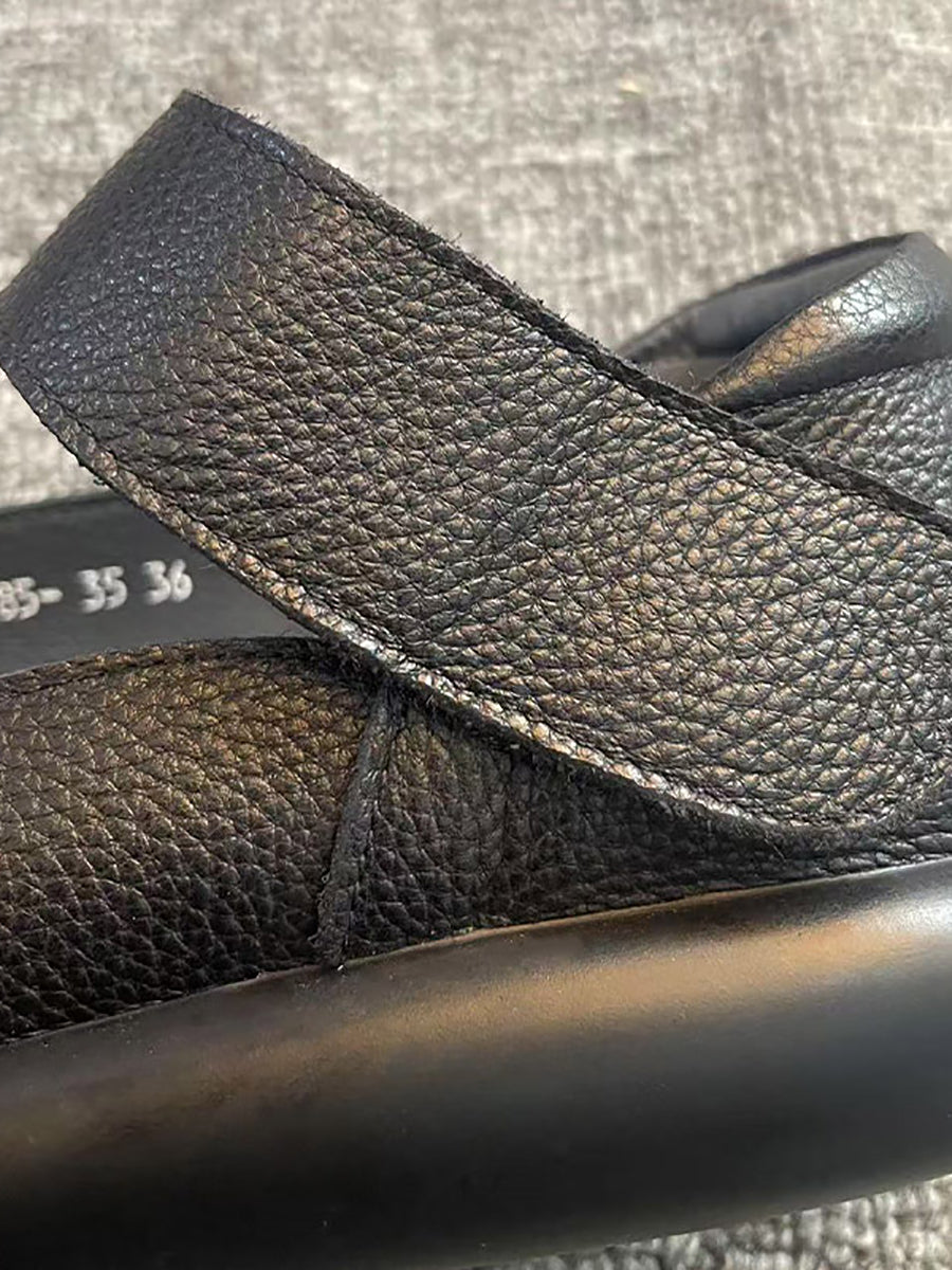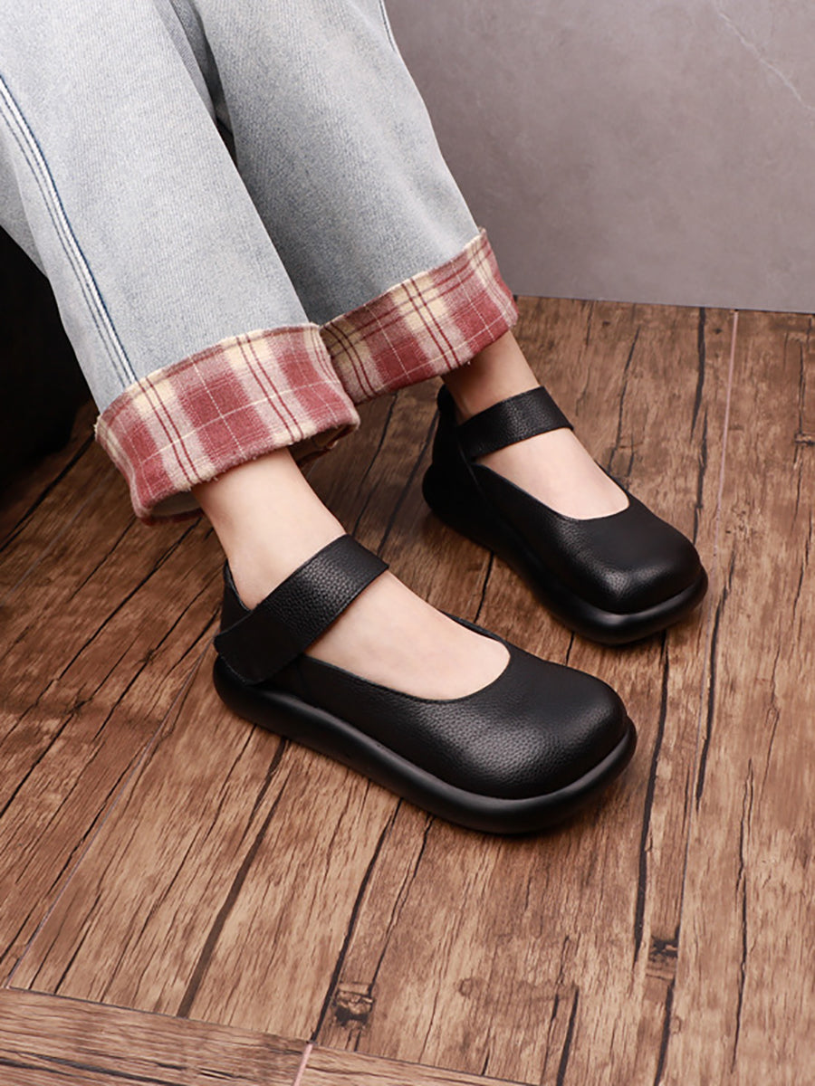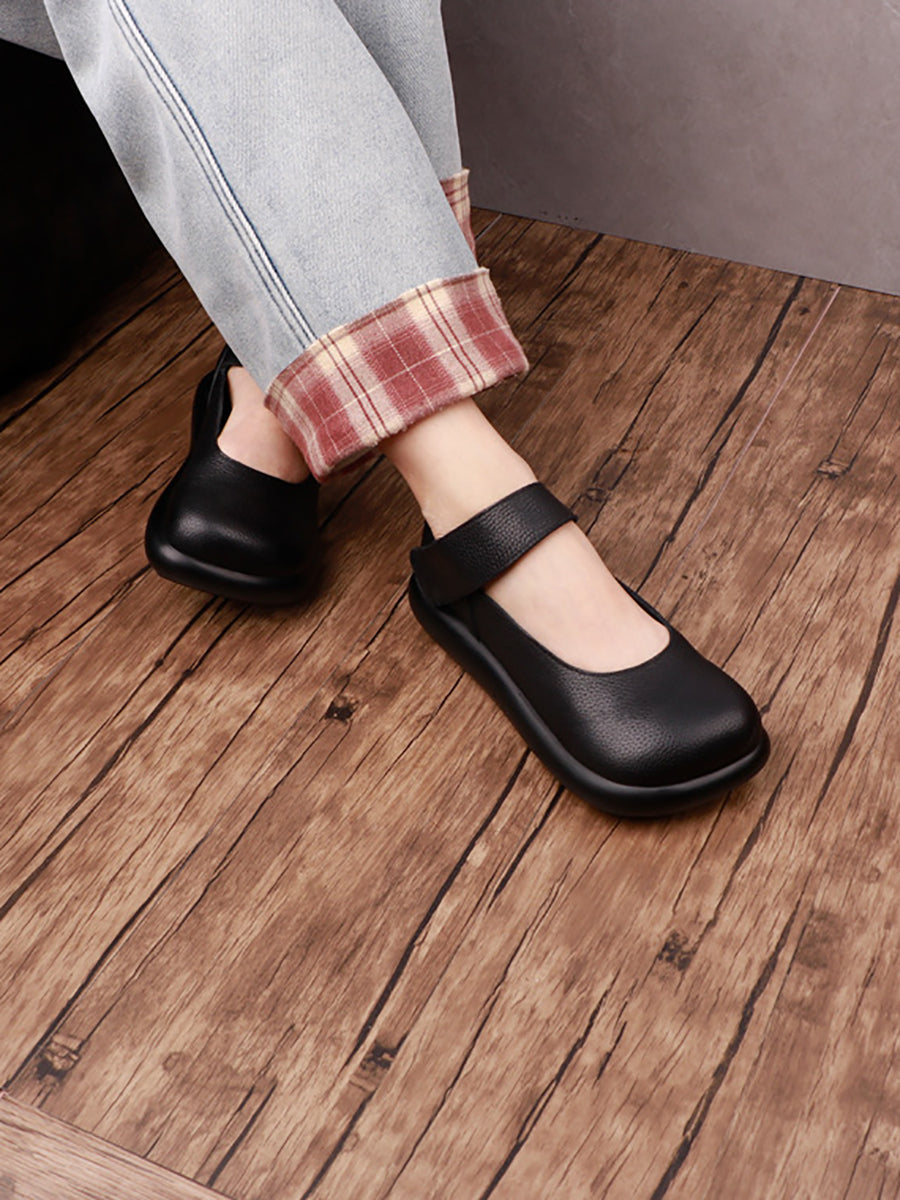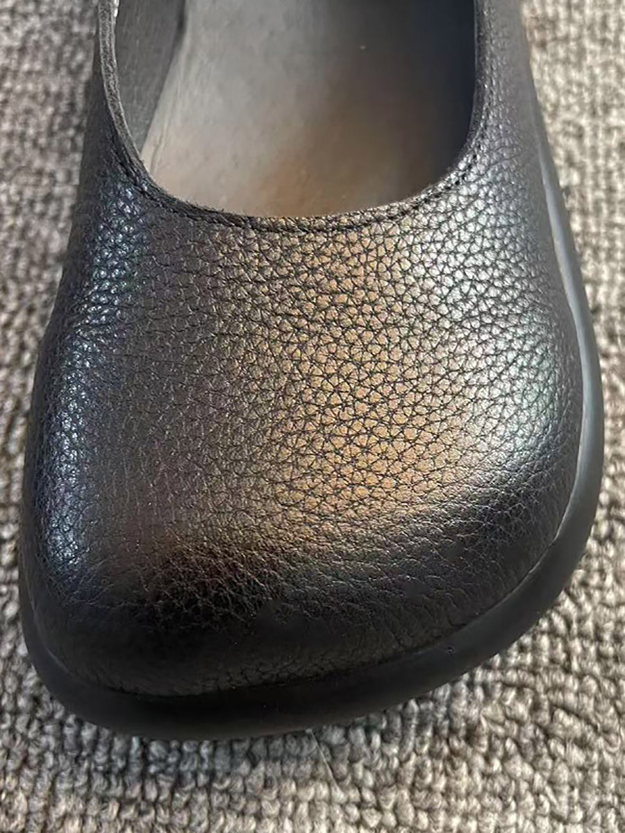 Sapatos femininos vintage de couro legítimo macio e rasteiro