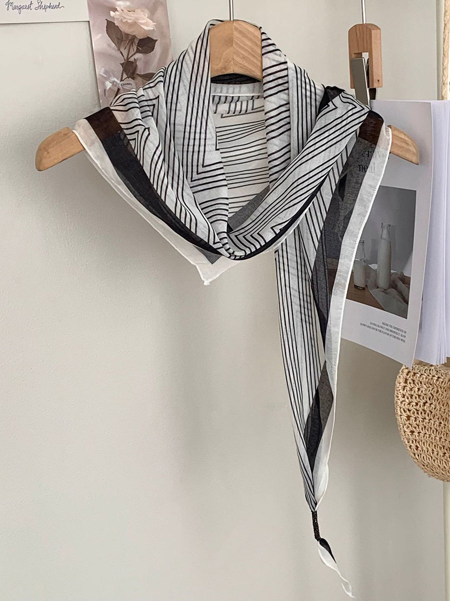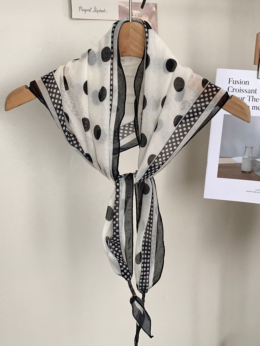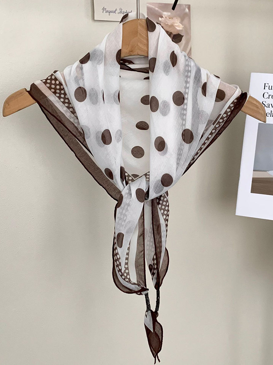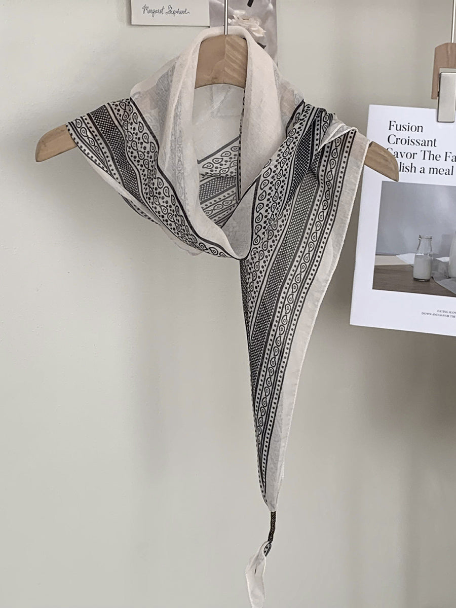 Lenço feminino vintage listrado com bolinhas e estampa triangular.