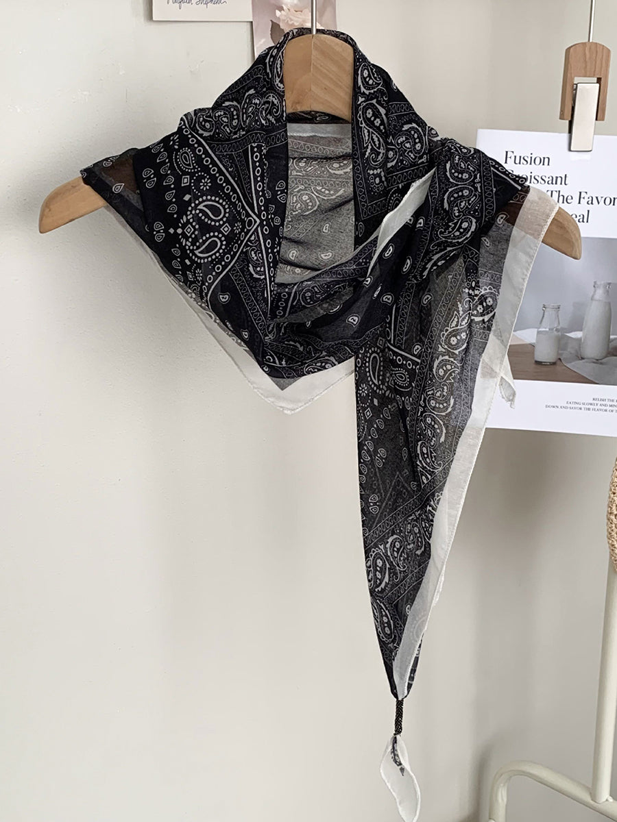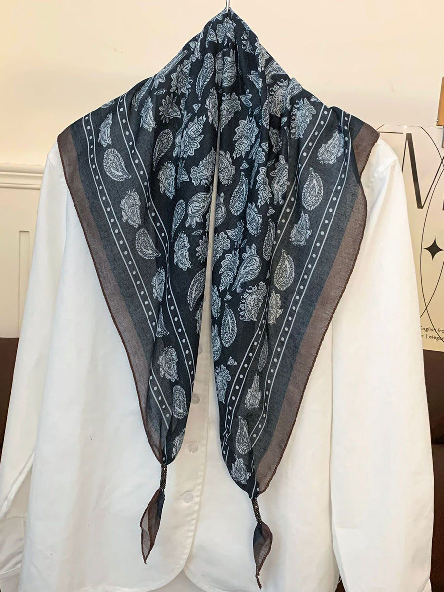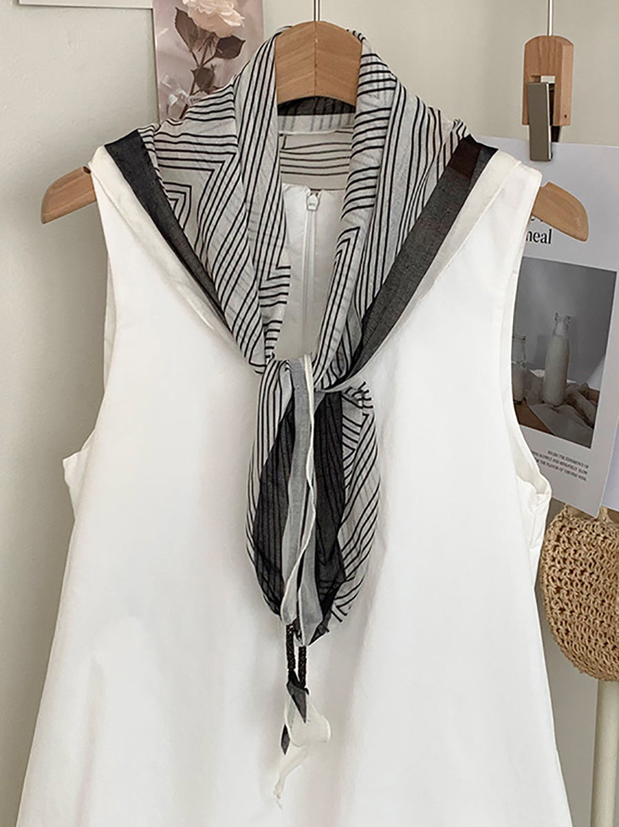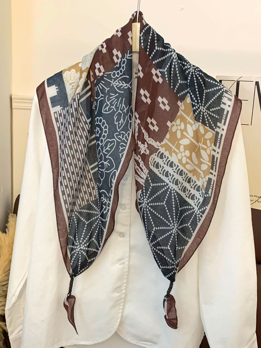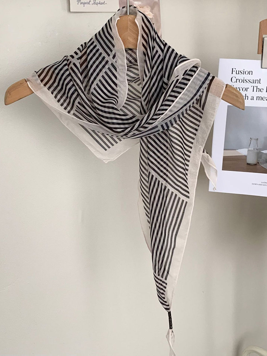 Lenço feminino vintage listrado com bolinhas e estampa triangular.