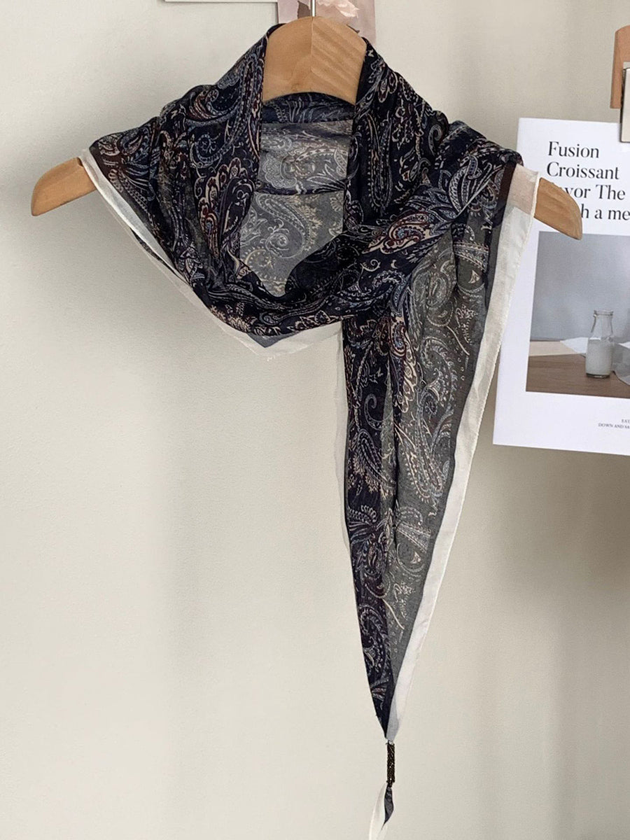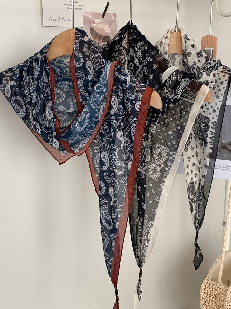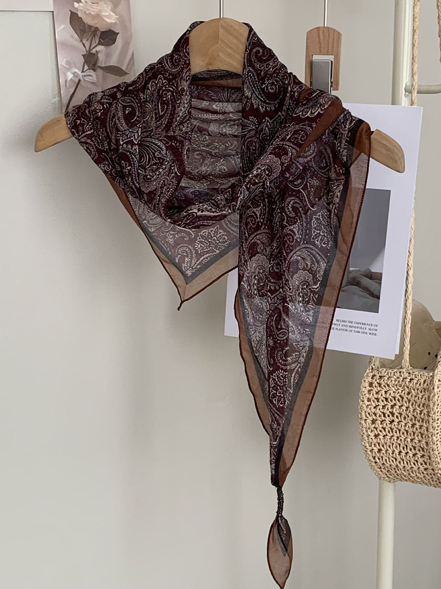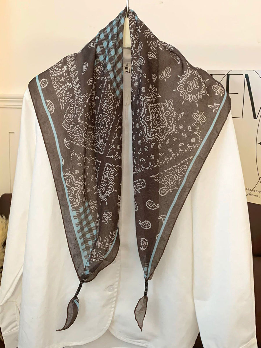 Lenço feminino vintage listrado com bolinhas e estampa triangular.