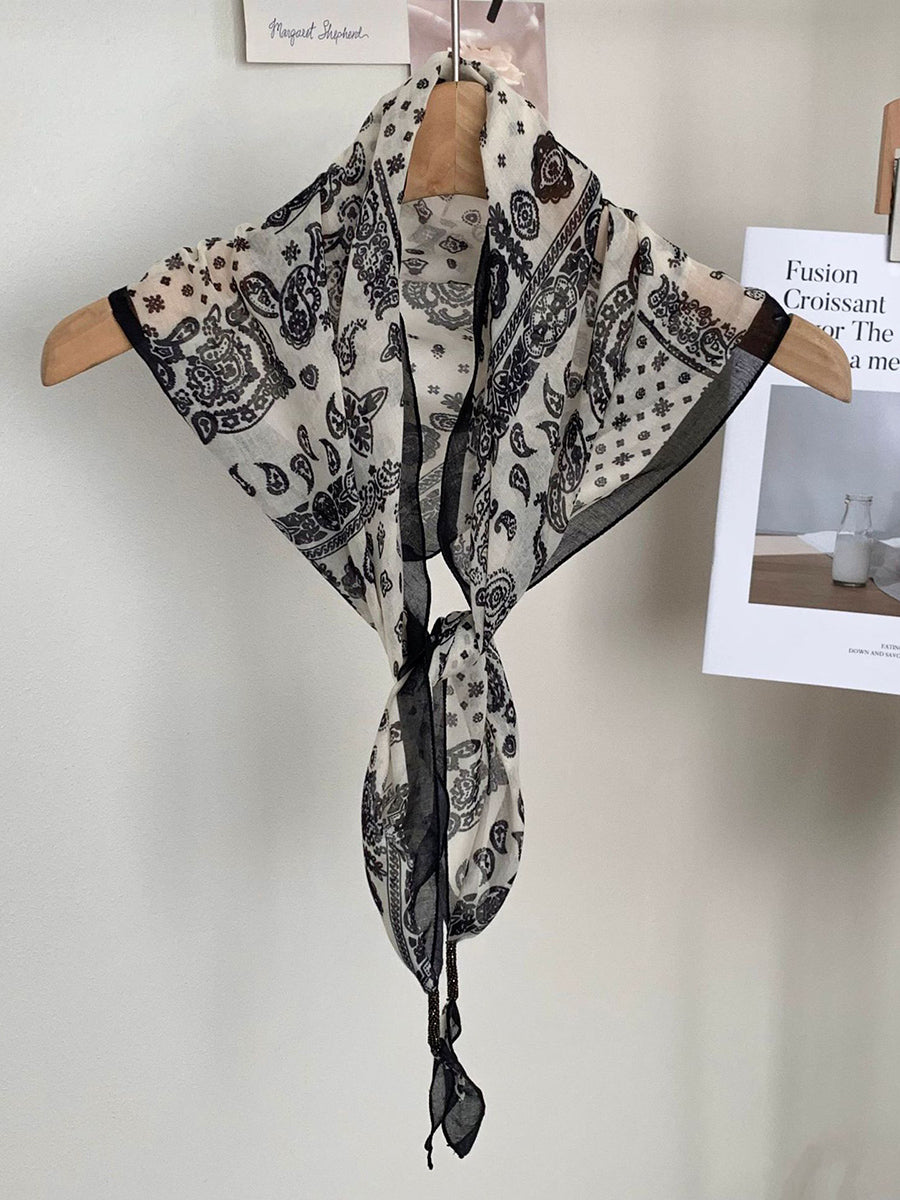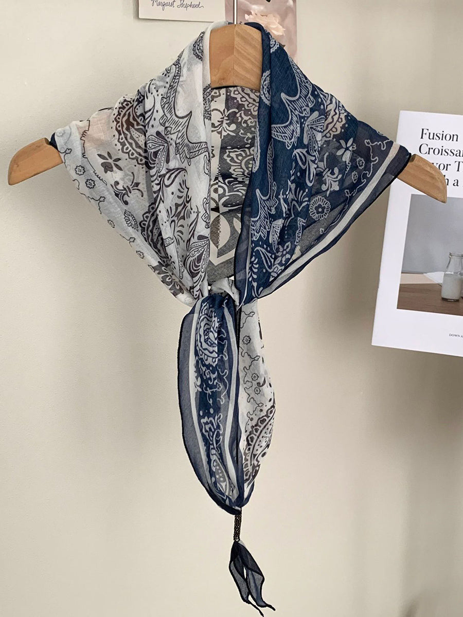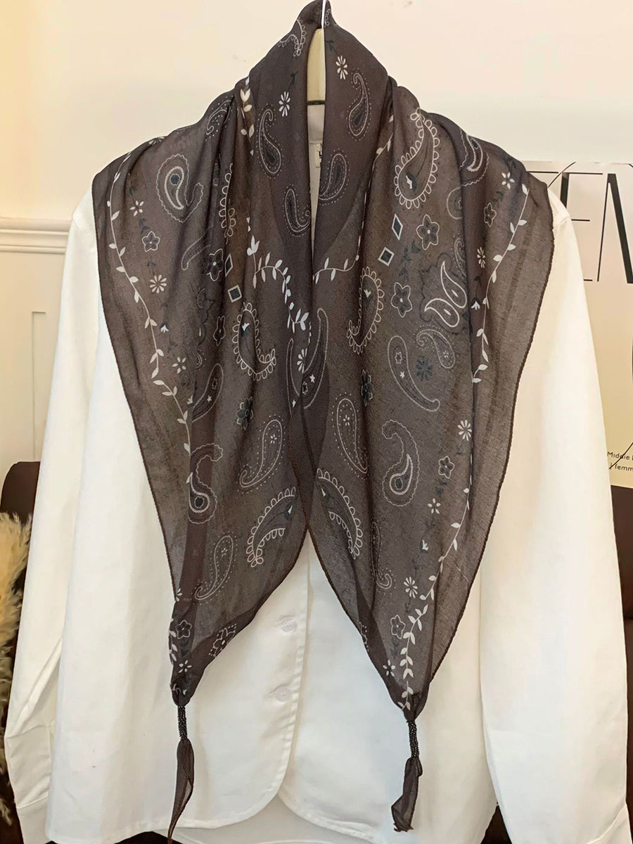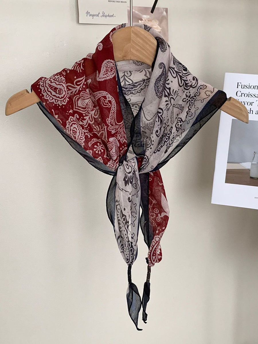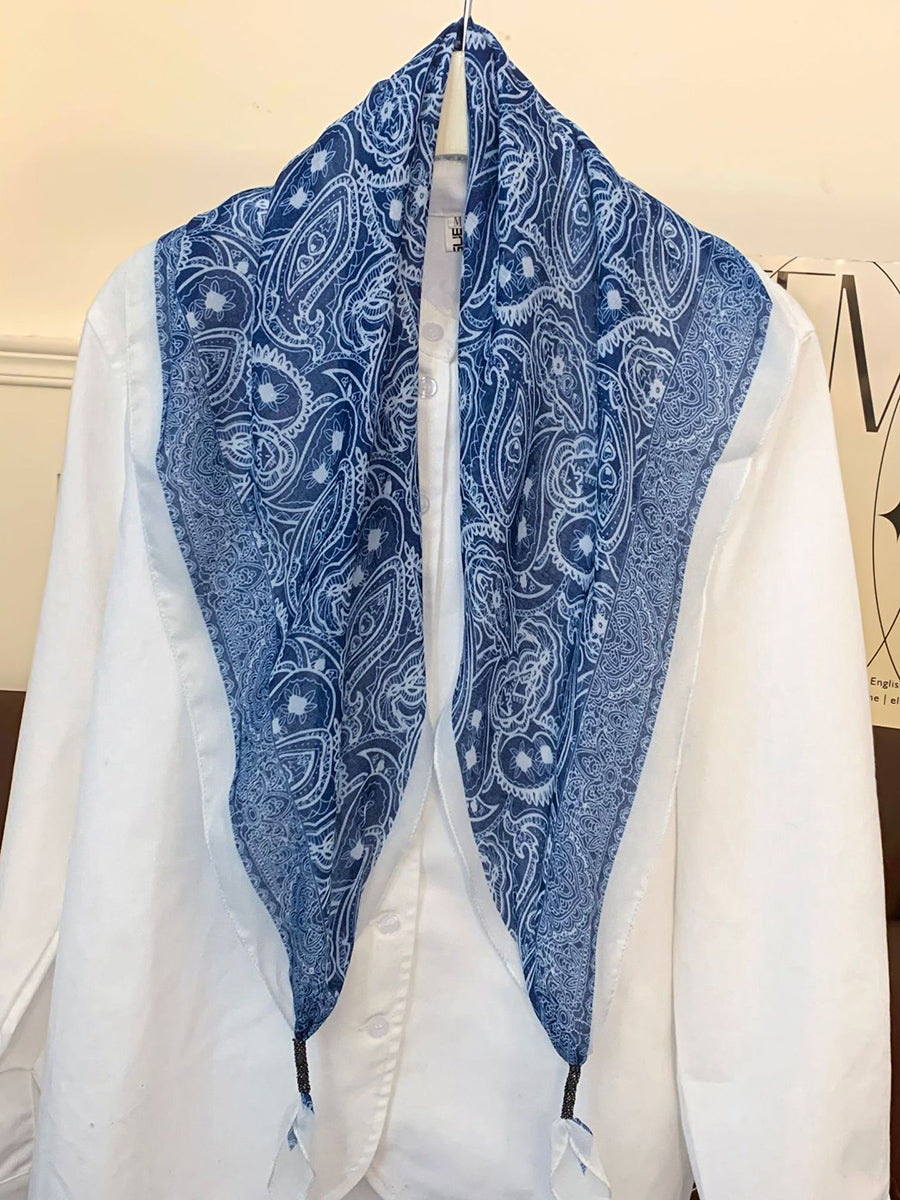 Lenço feminino vintage listrado com bolinhas e estampa triangular.