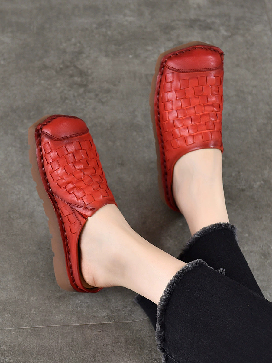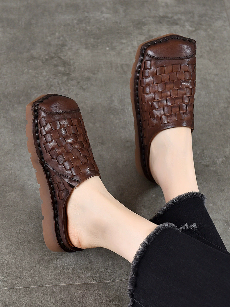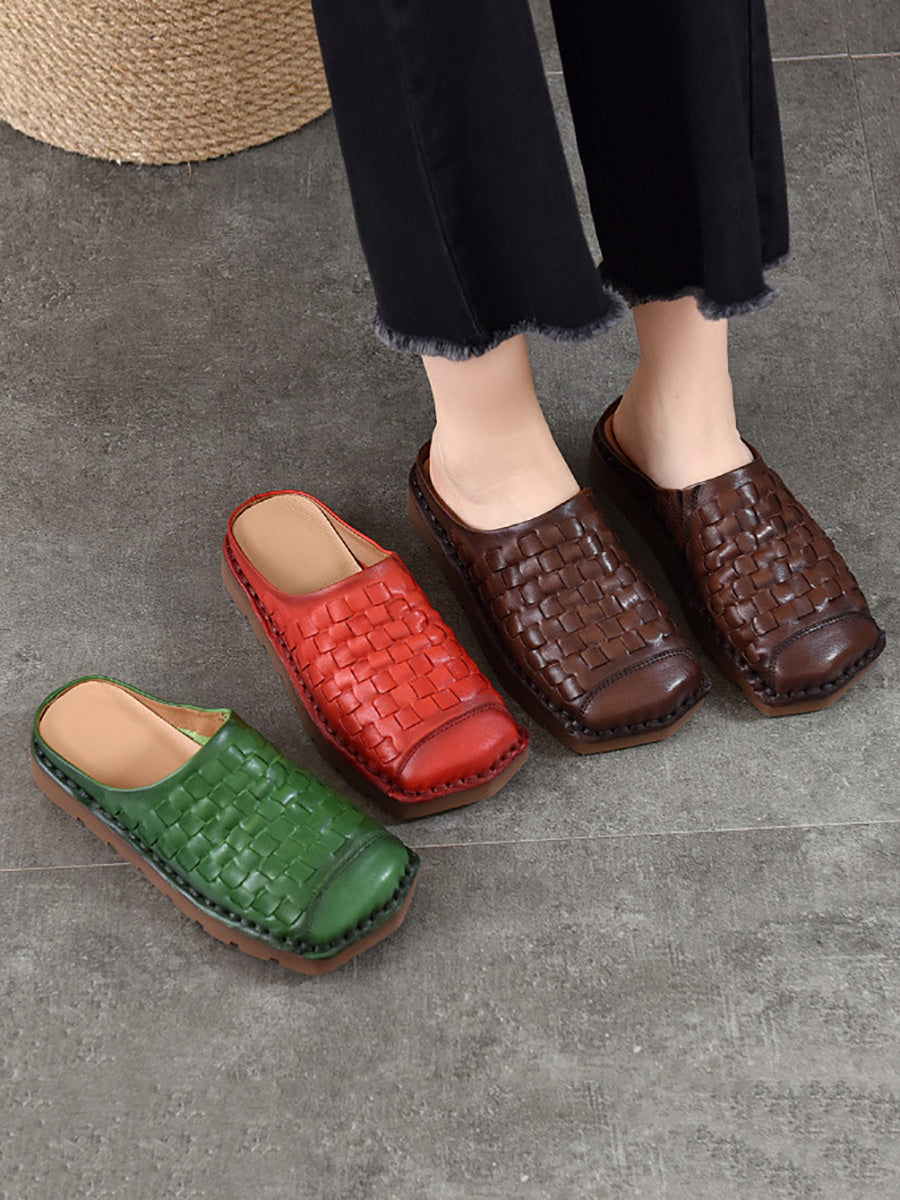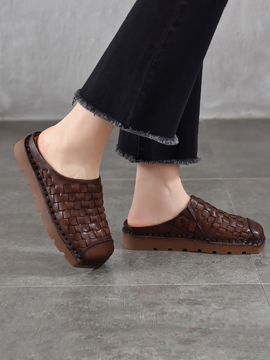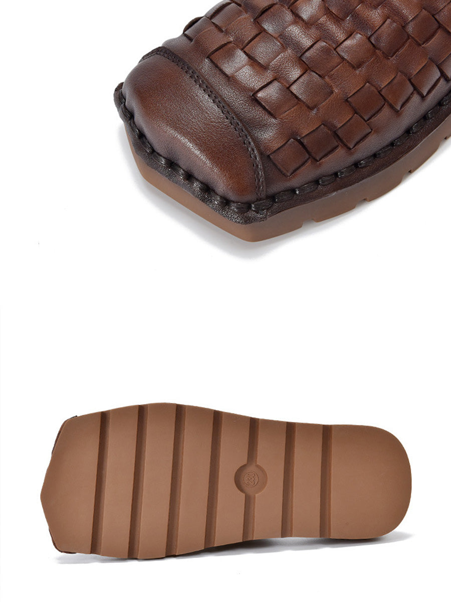 Chinelo feminino vintage de verão em couro legítimo trançado