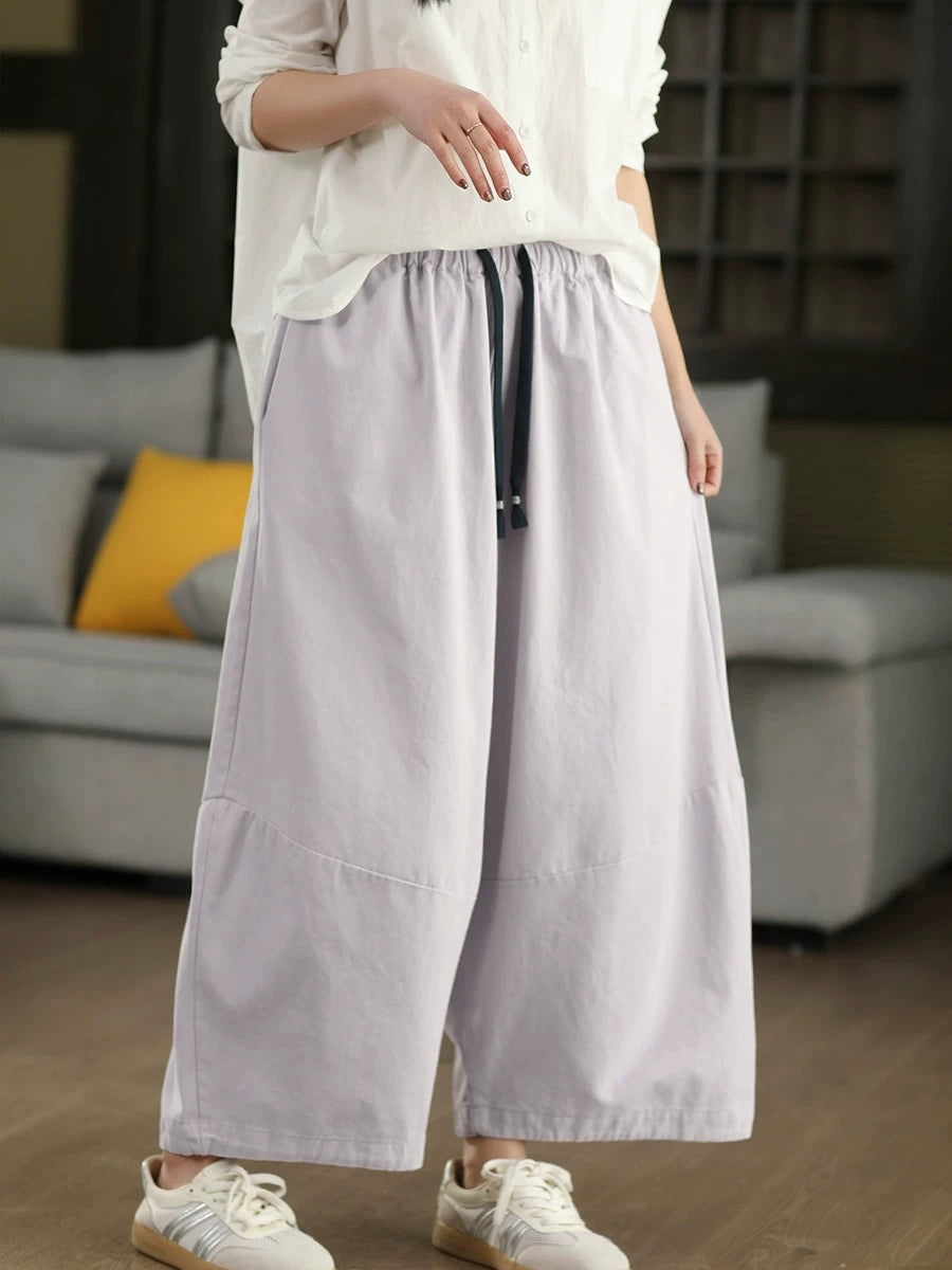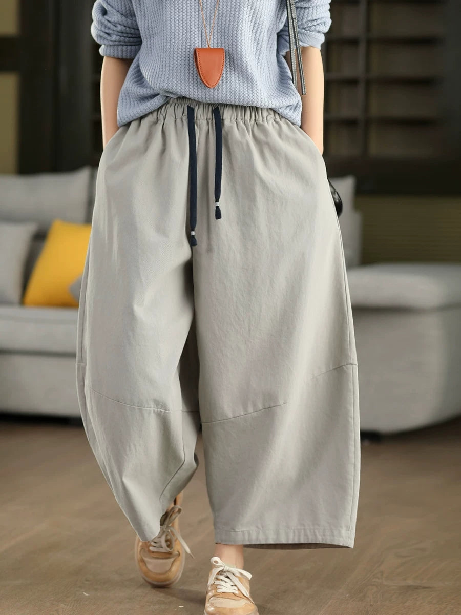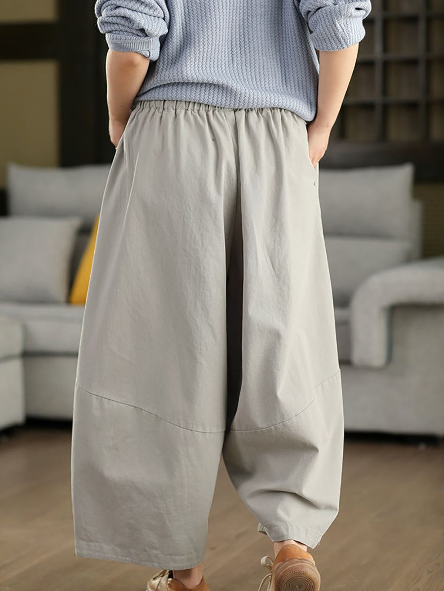 Calça feminina casual de inverno, cor lisa, 100% algodão, pernas largas.