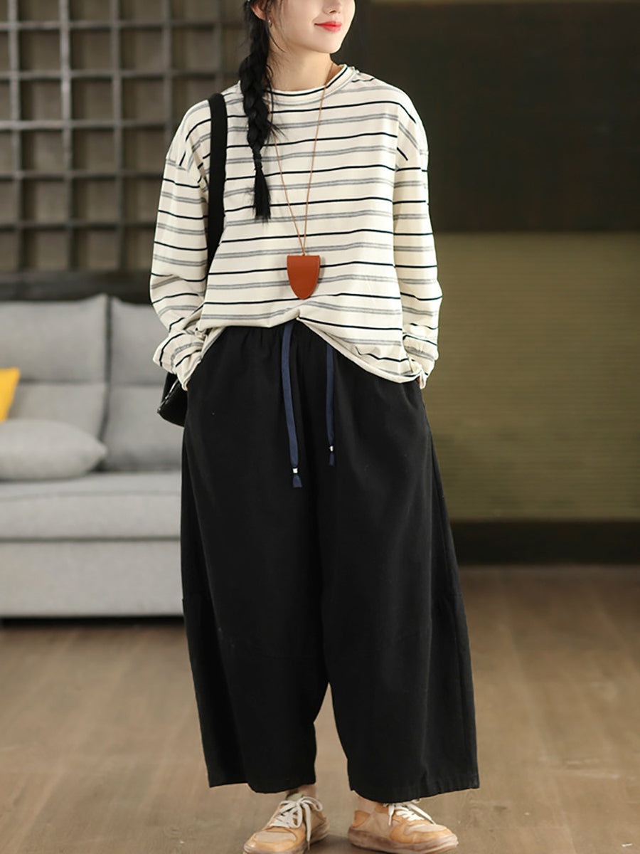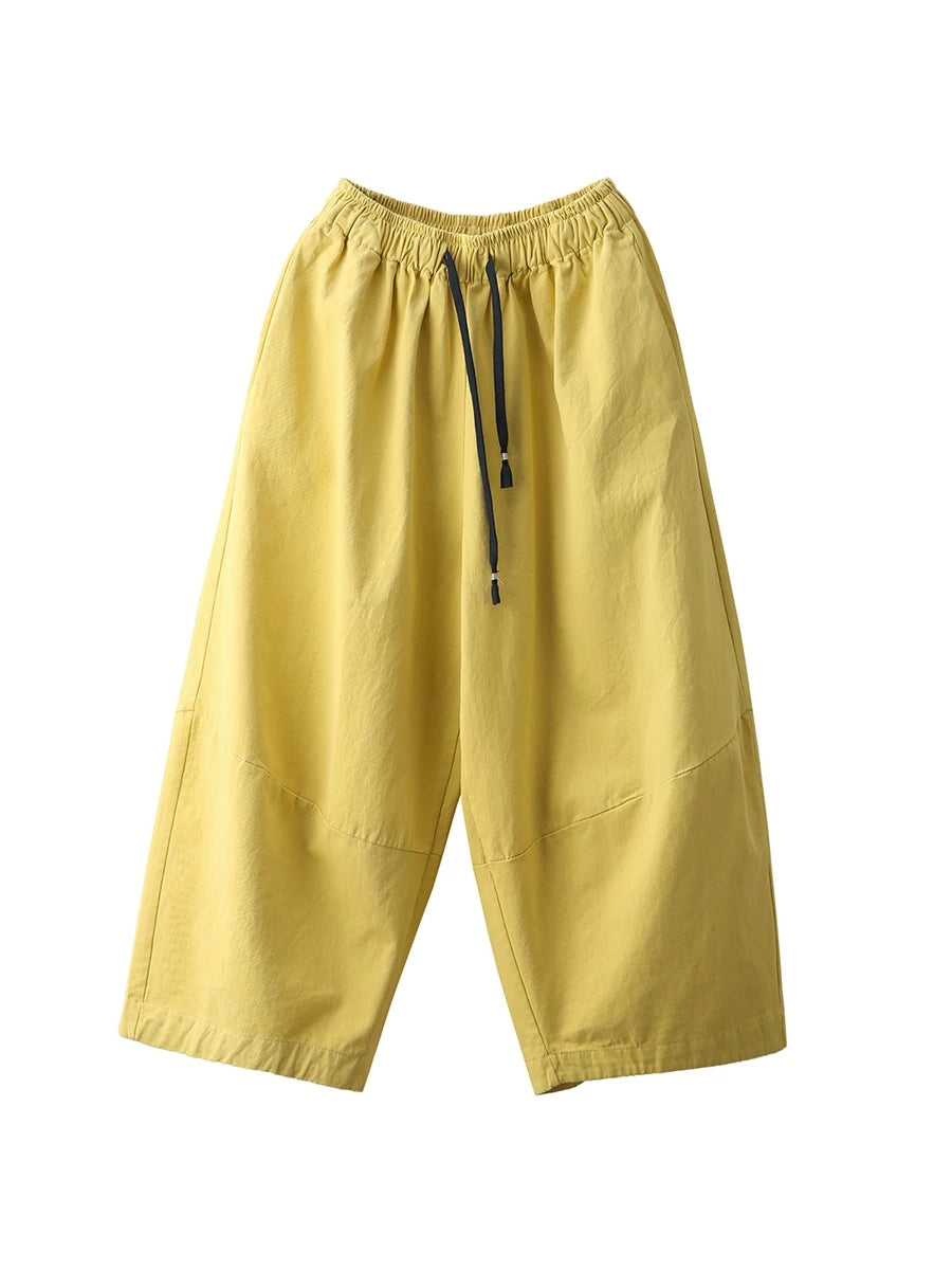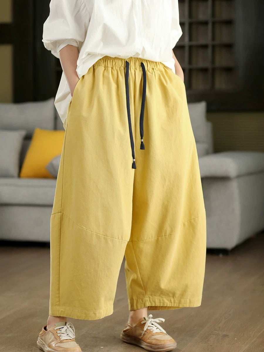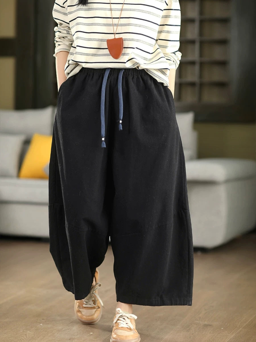 Calça feminina casual de inverno, cor lisa, 100% algodão, pernas largas.