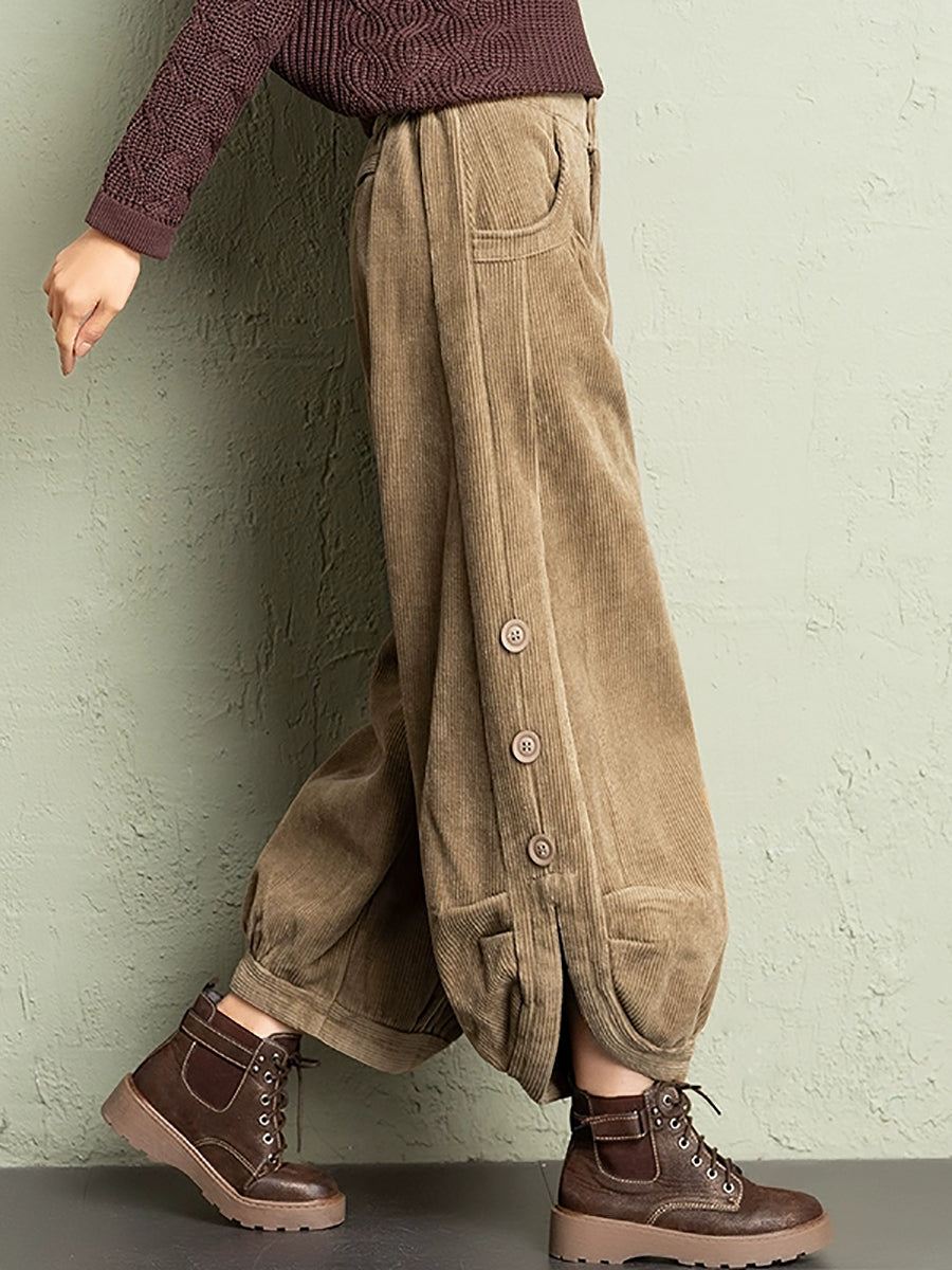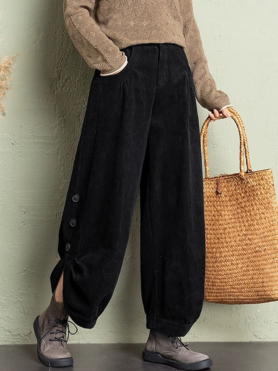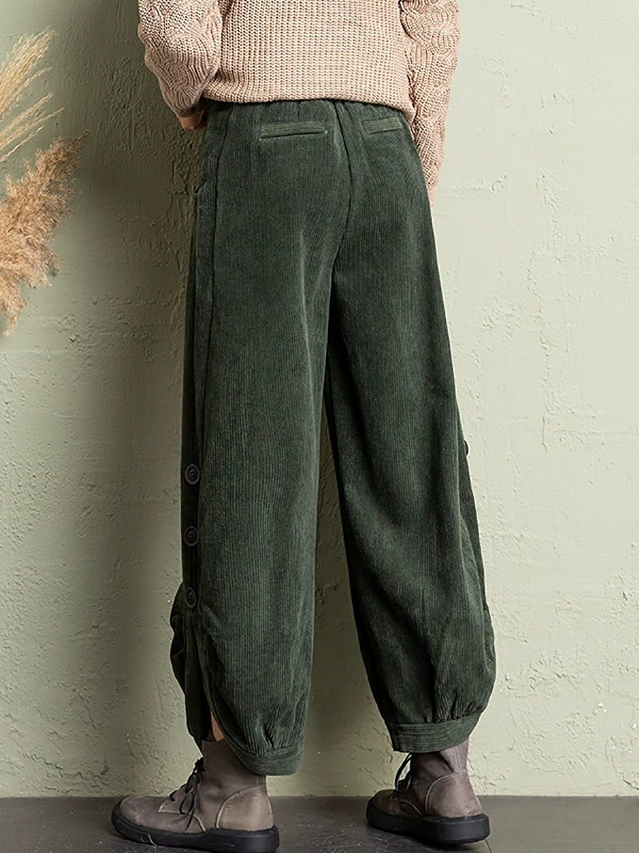Calças de veludo cotelê femininas casuais de inverno em cor lisa
