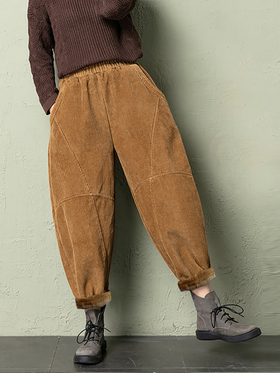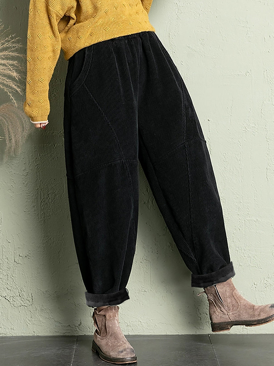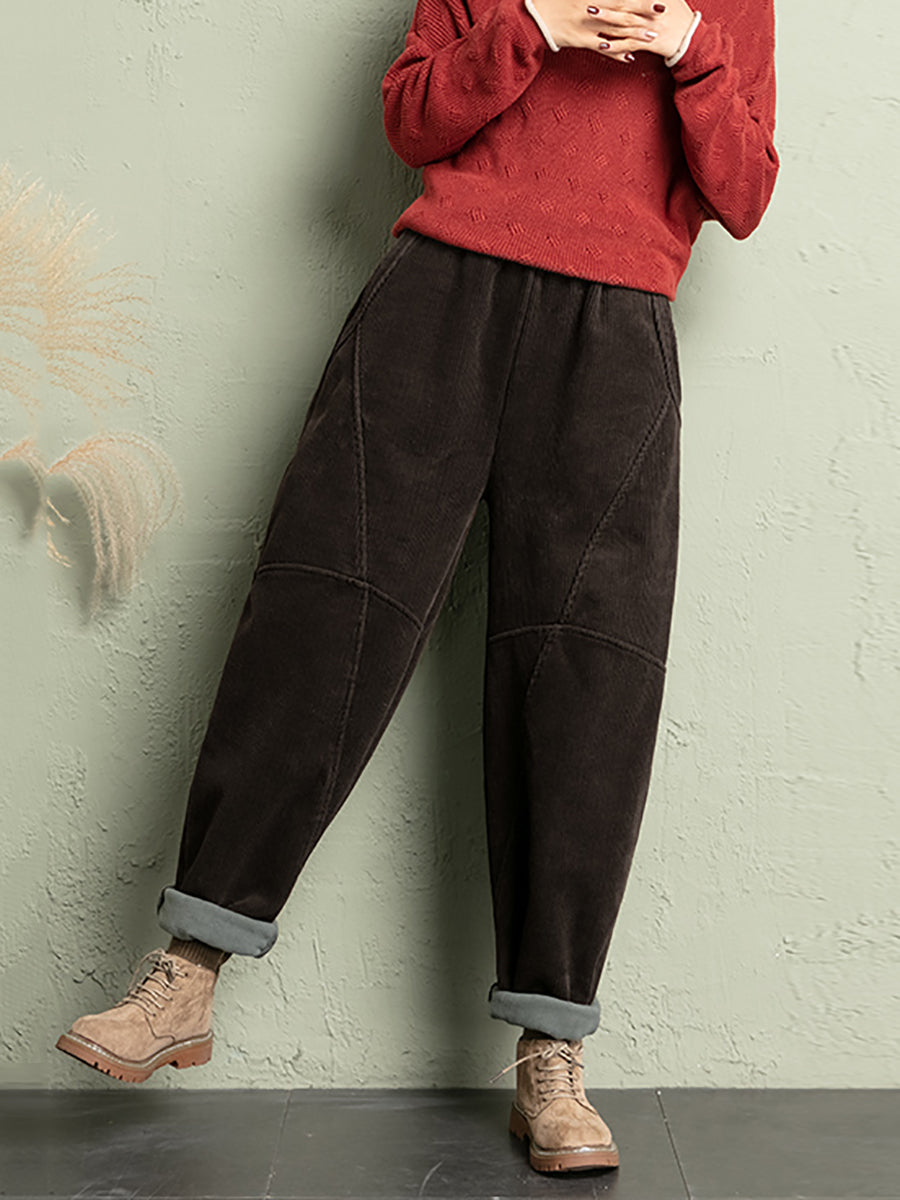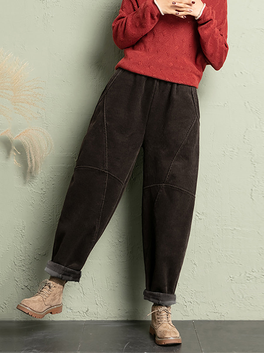 Calças de veludo cotelê femininas casuais de inverno em cores puras