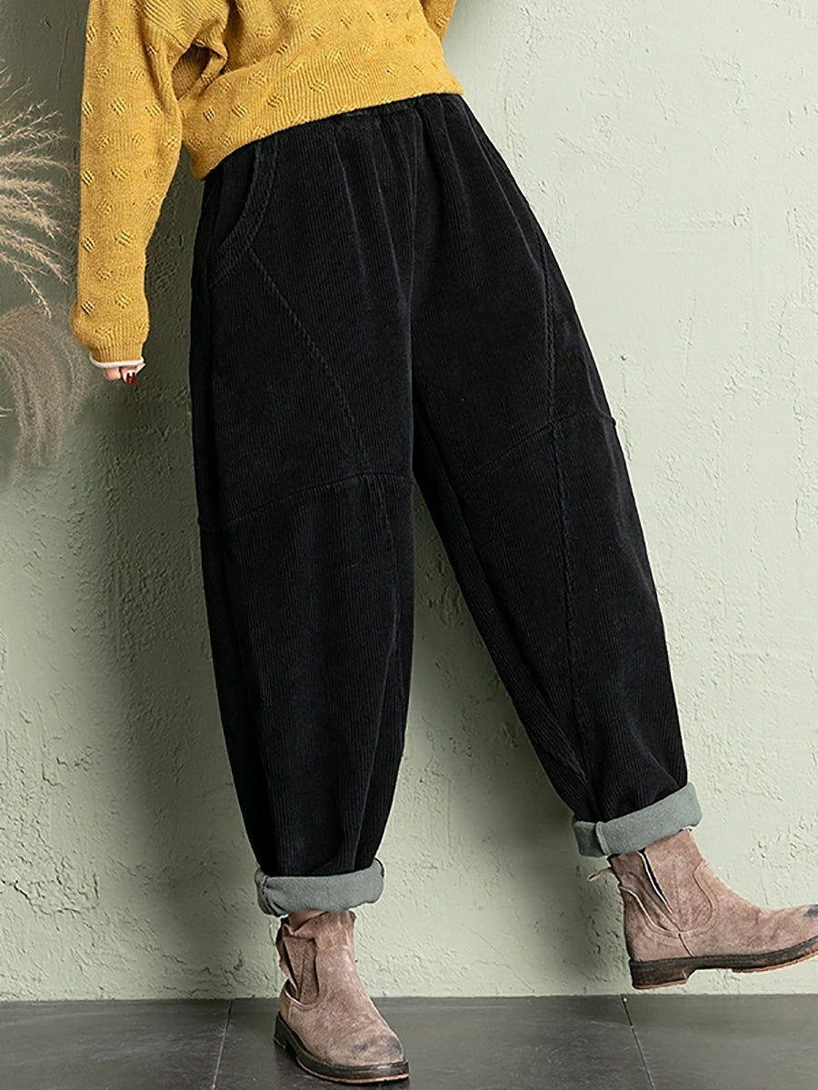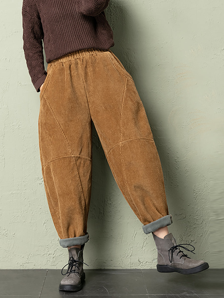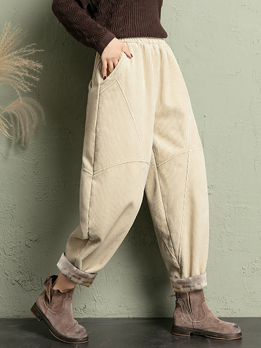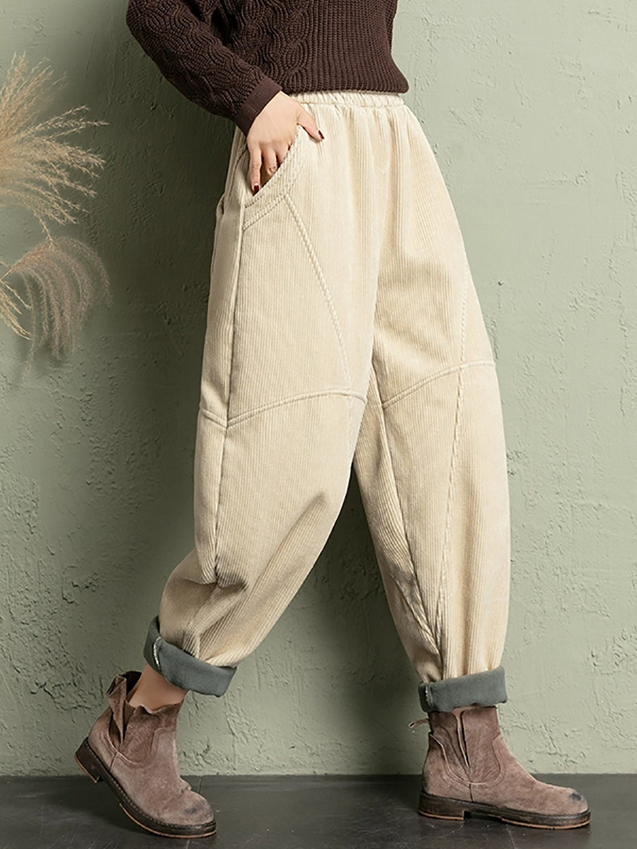 Calças de veludo cotelê femininas casuais de inverno em cores puras