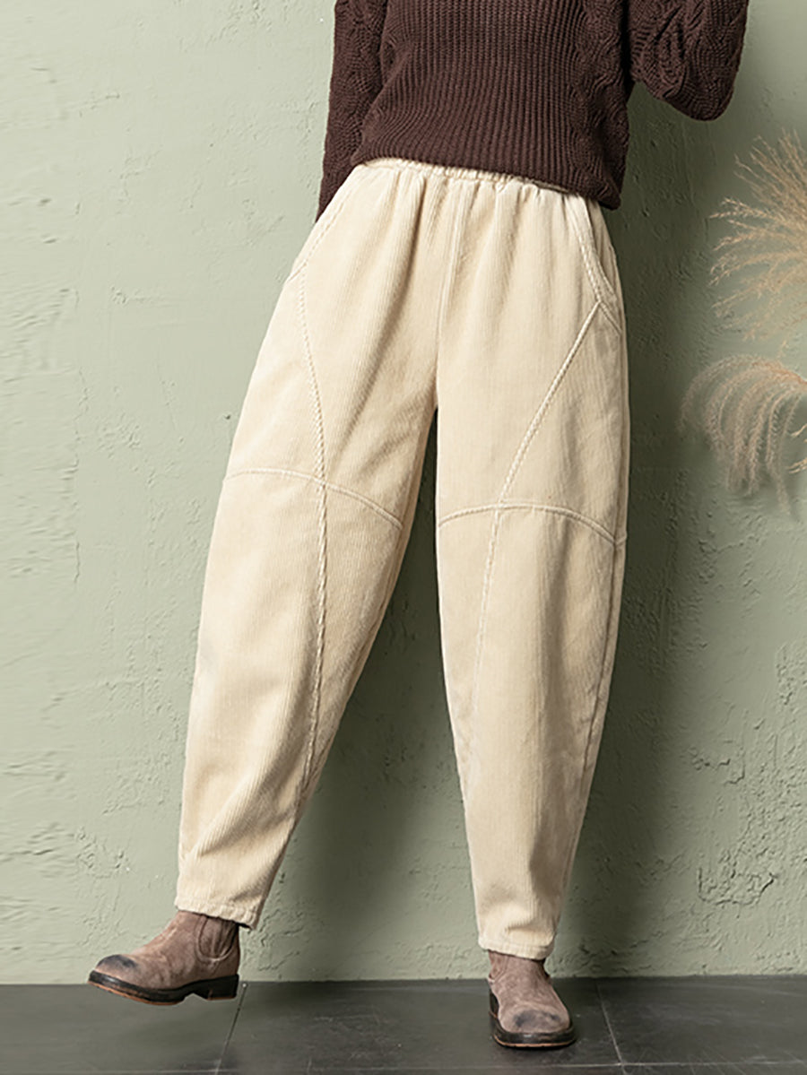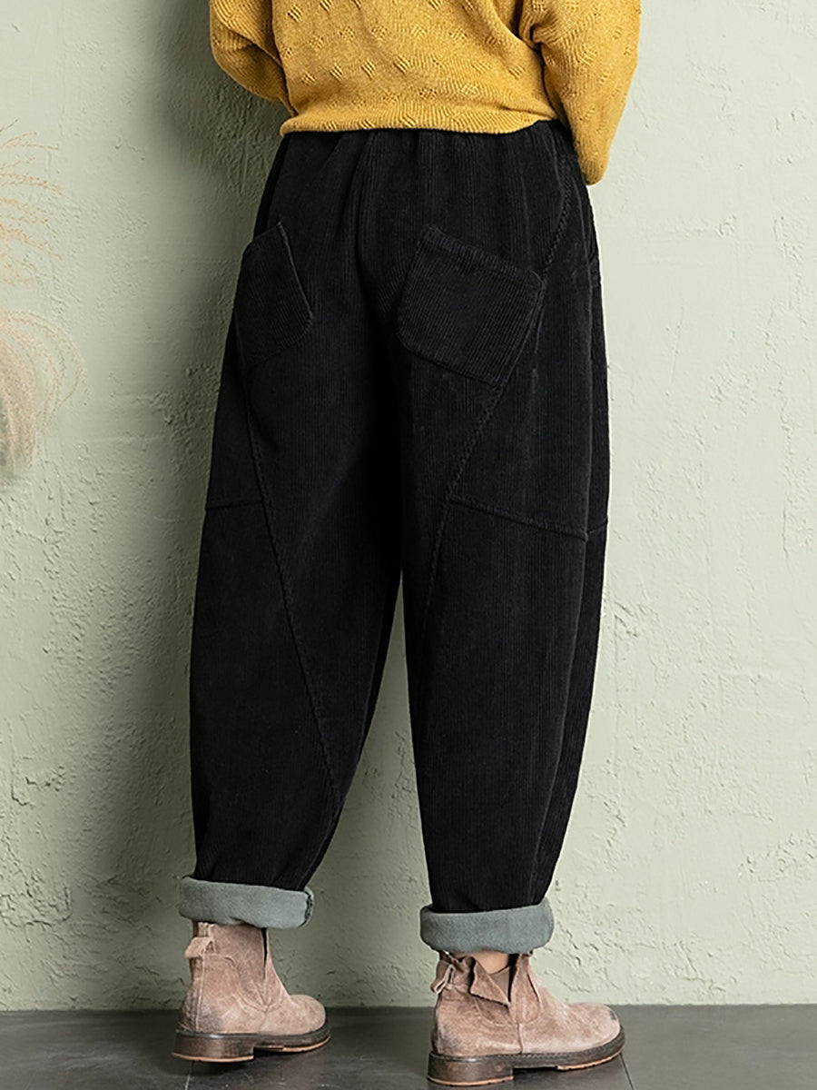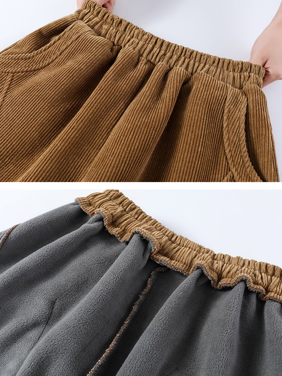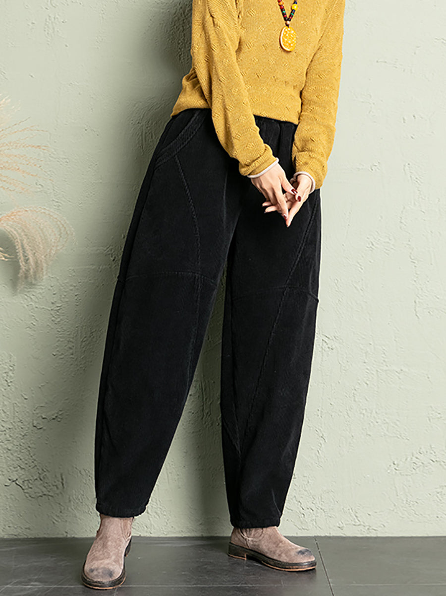 Calças de veludo cotelê femininas casuais de inverno em cores puras