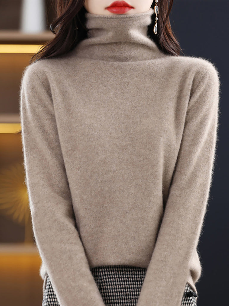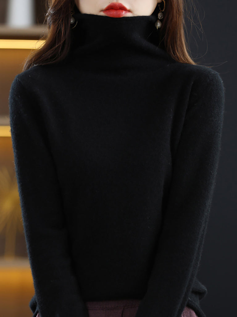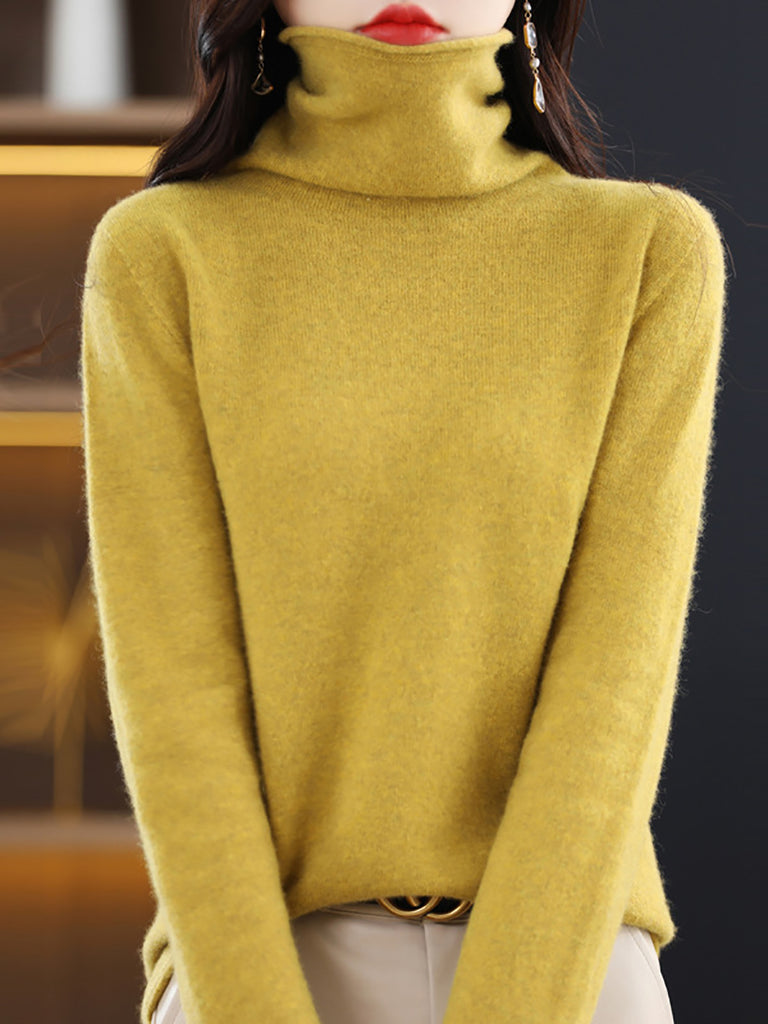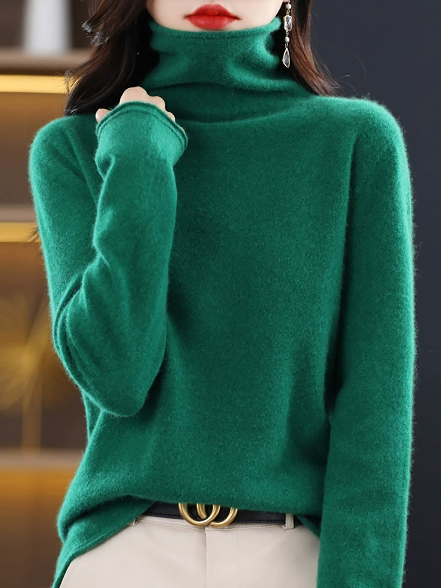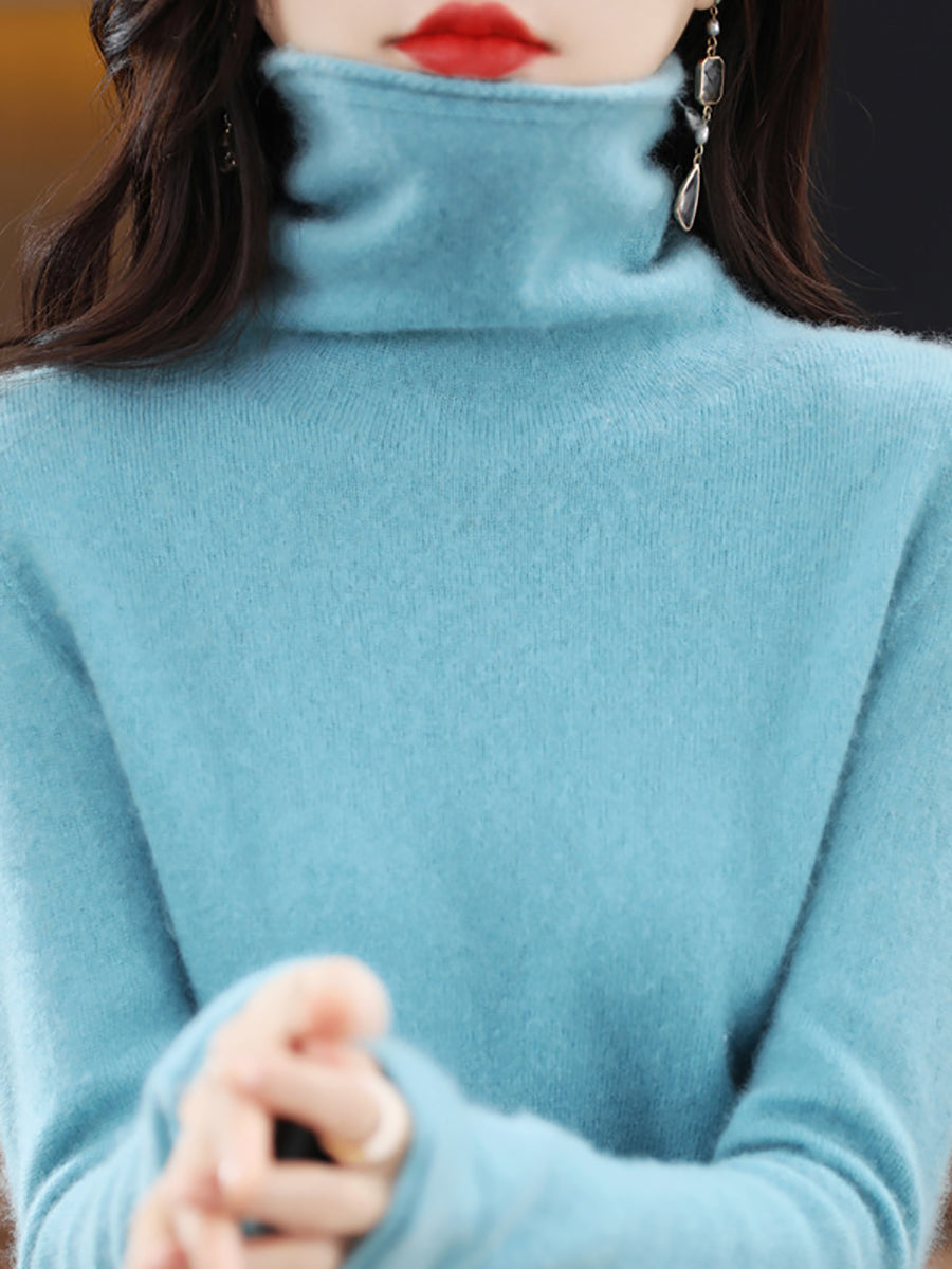 Suéter feminino de gola alta casual de cor lisa para o inverno
