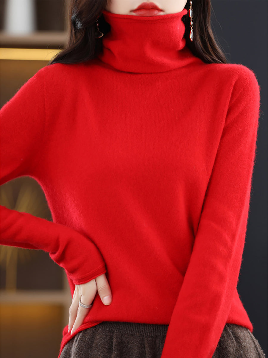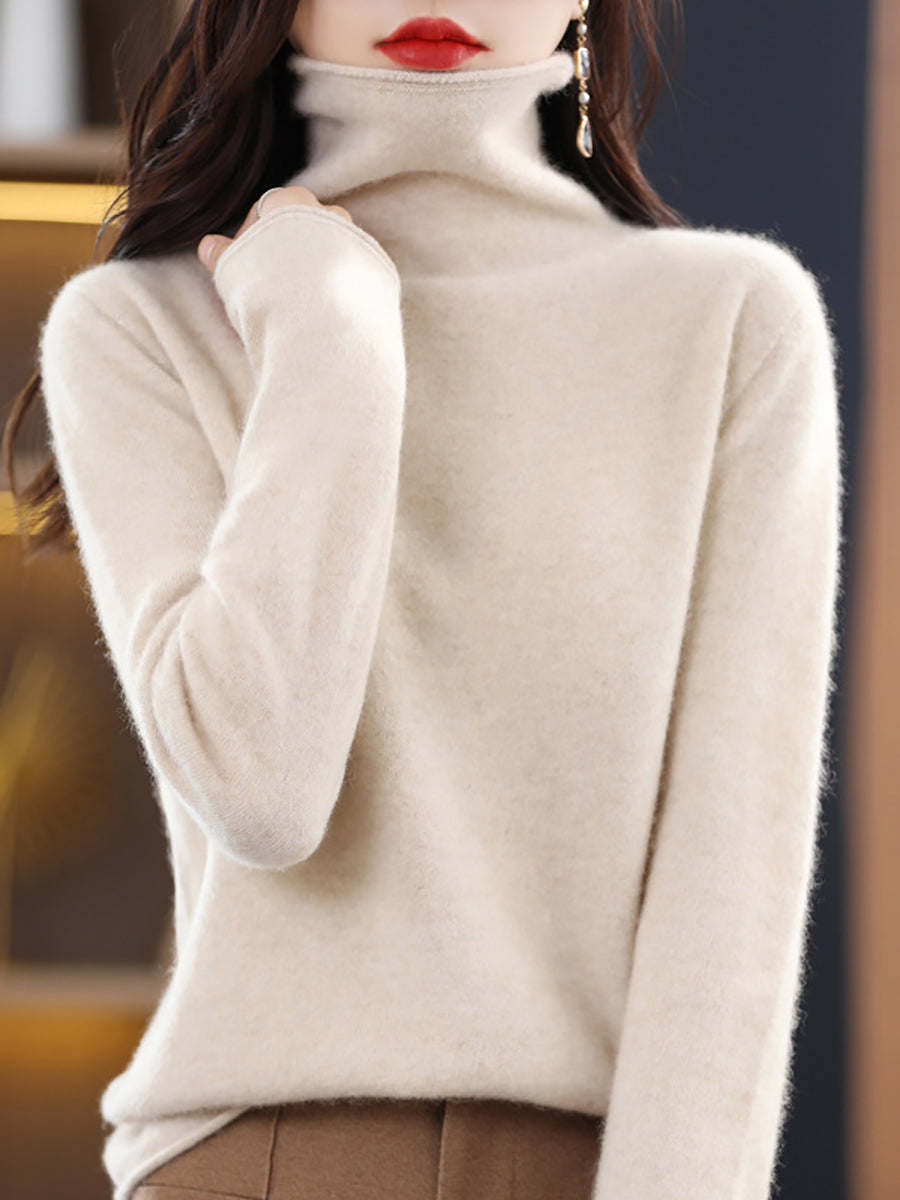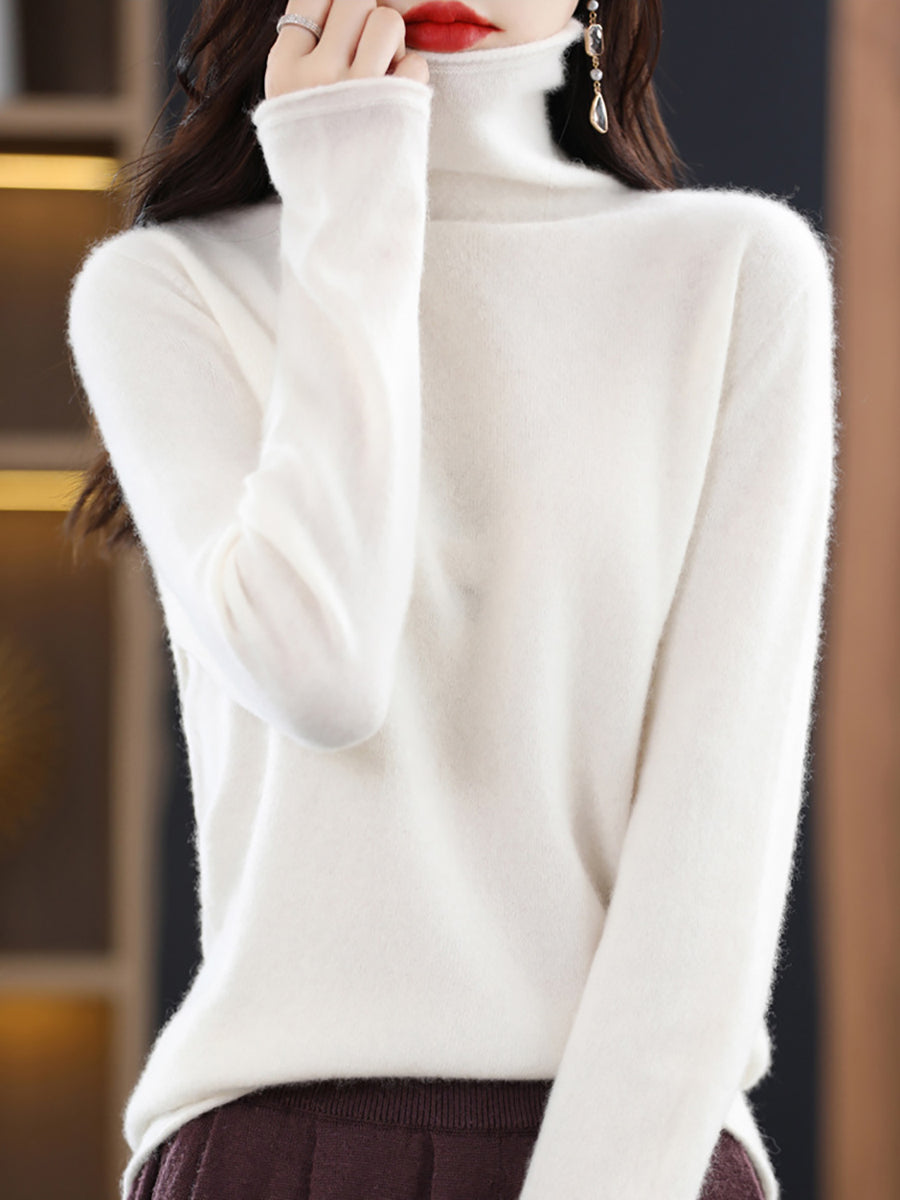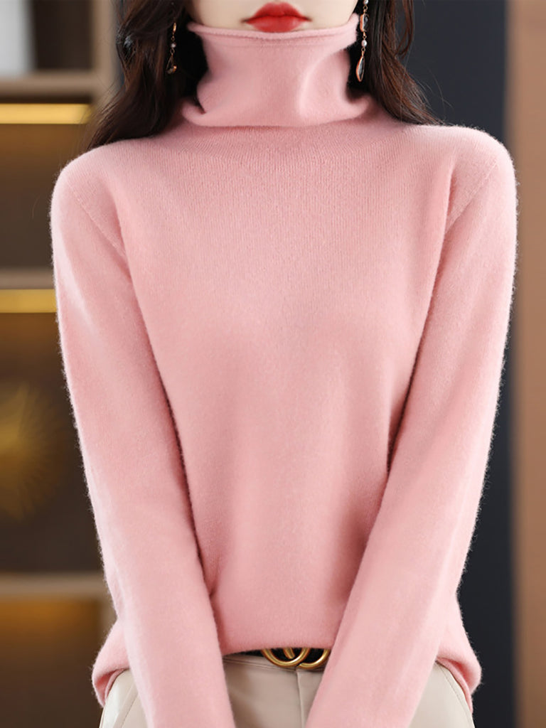 Suéter feminino de gola alta casual de cor lisa para o inverno