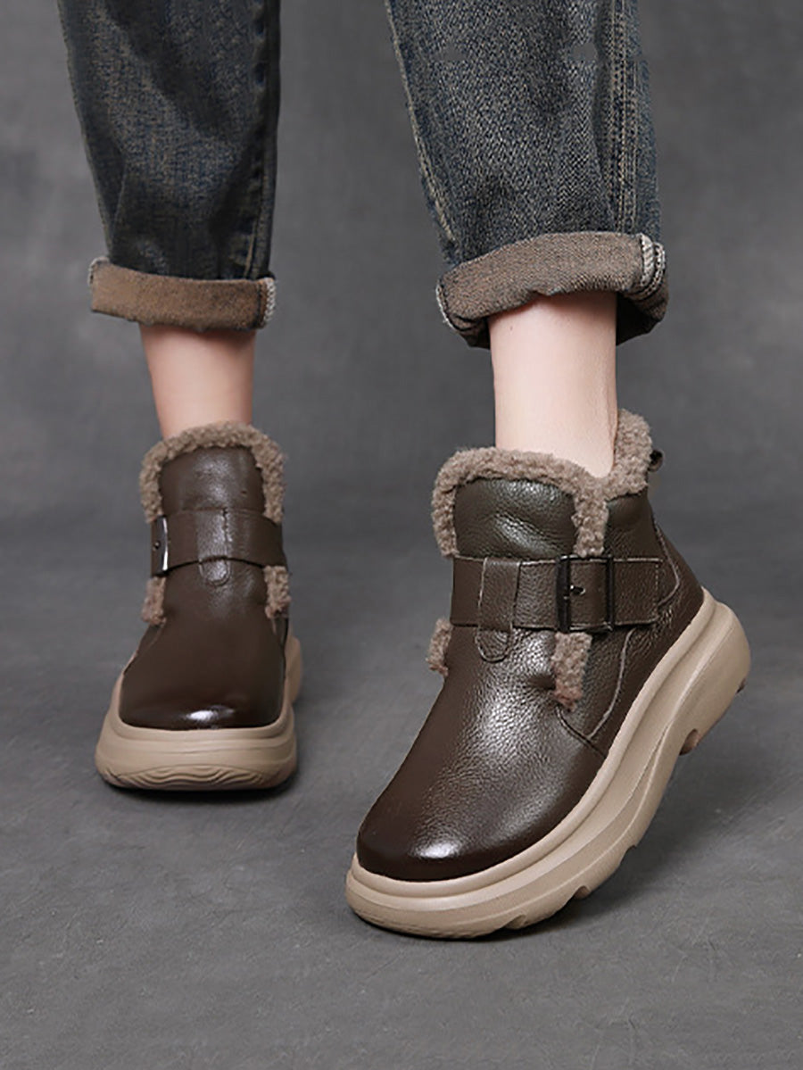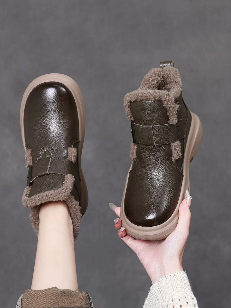 Botas de cano curto femininas de inverno em couro legítimo com forro de lã
