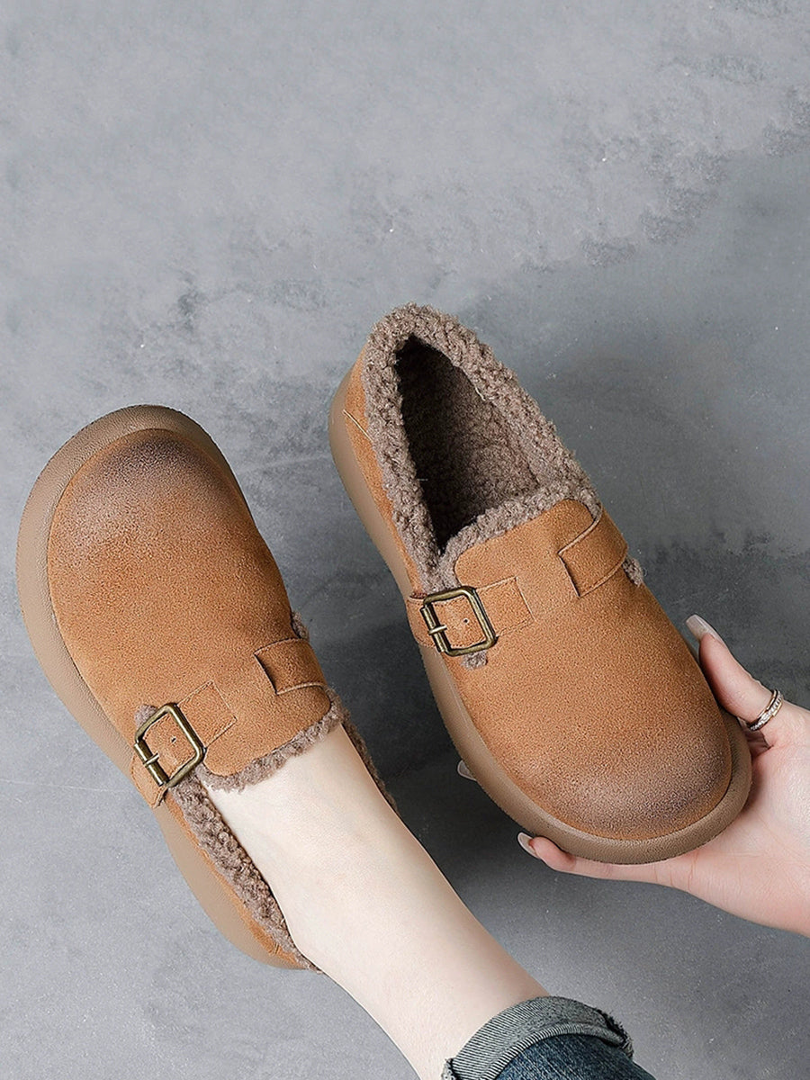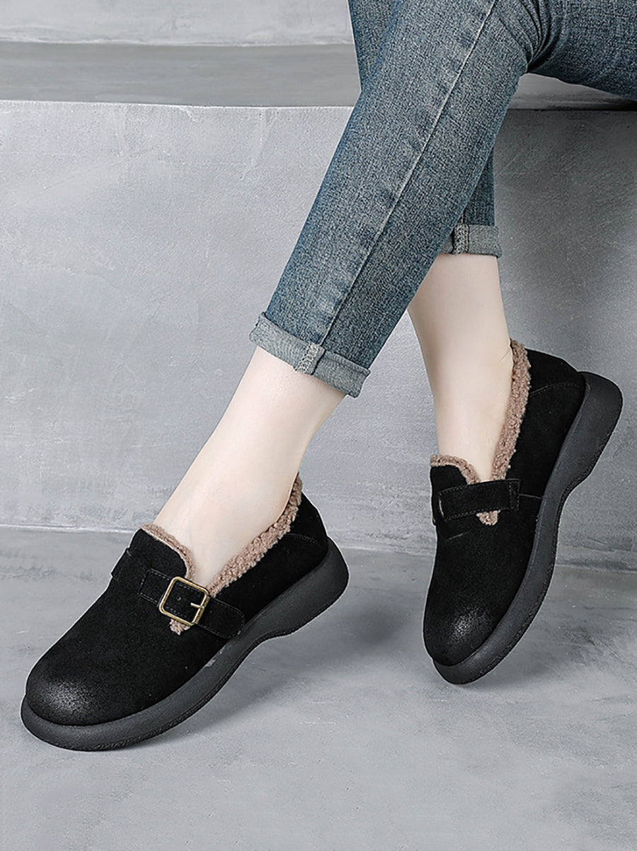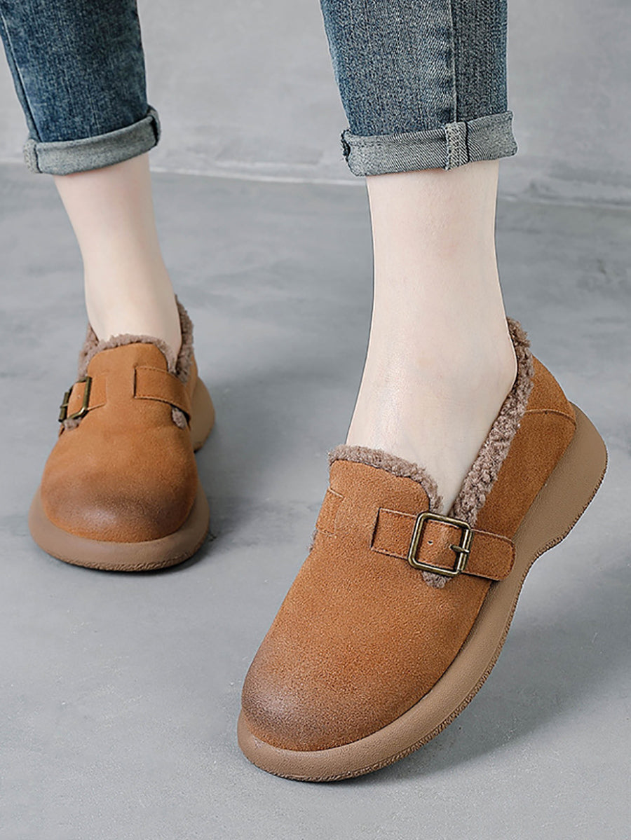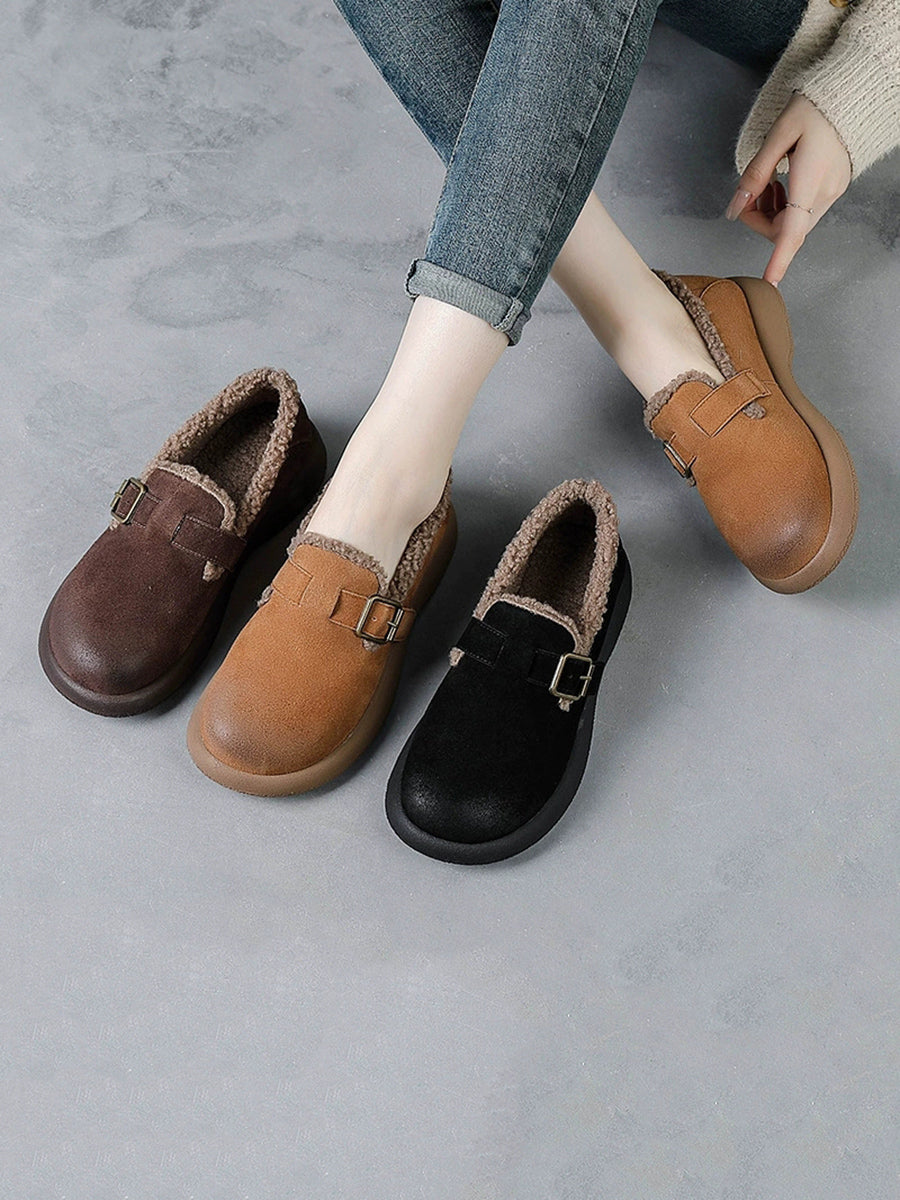 Sapatos de plataforma femininos de inverno em couro legítimo com forro de lã