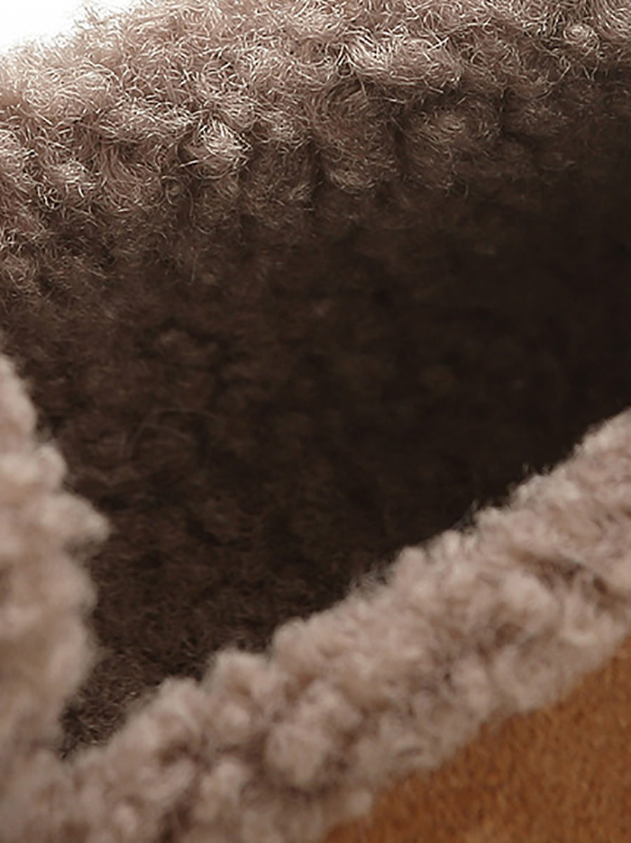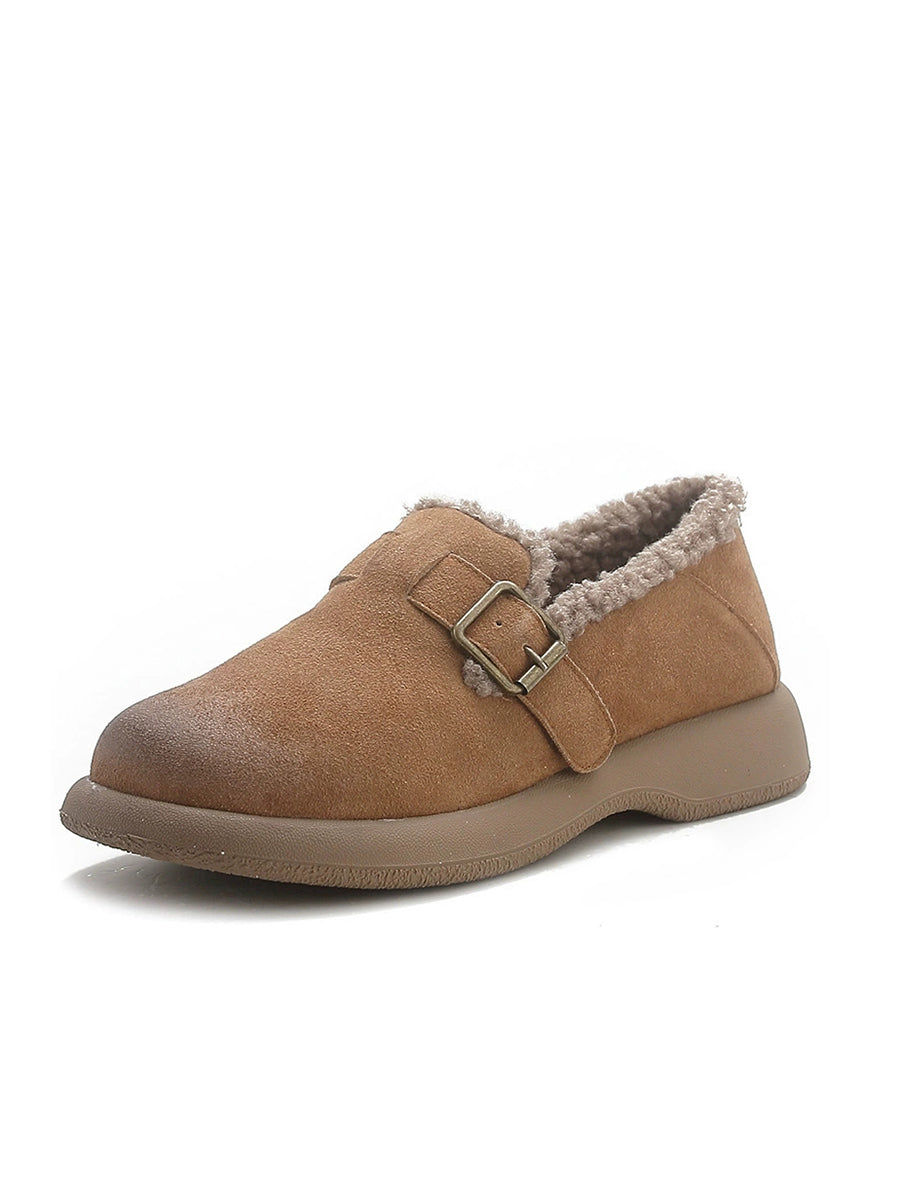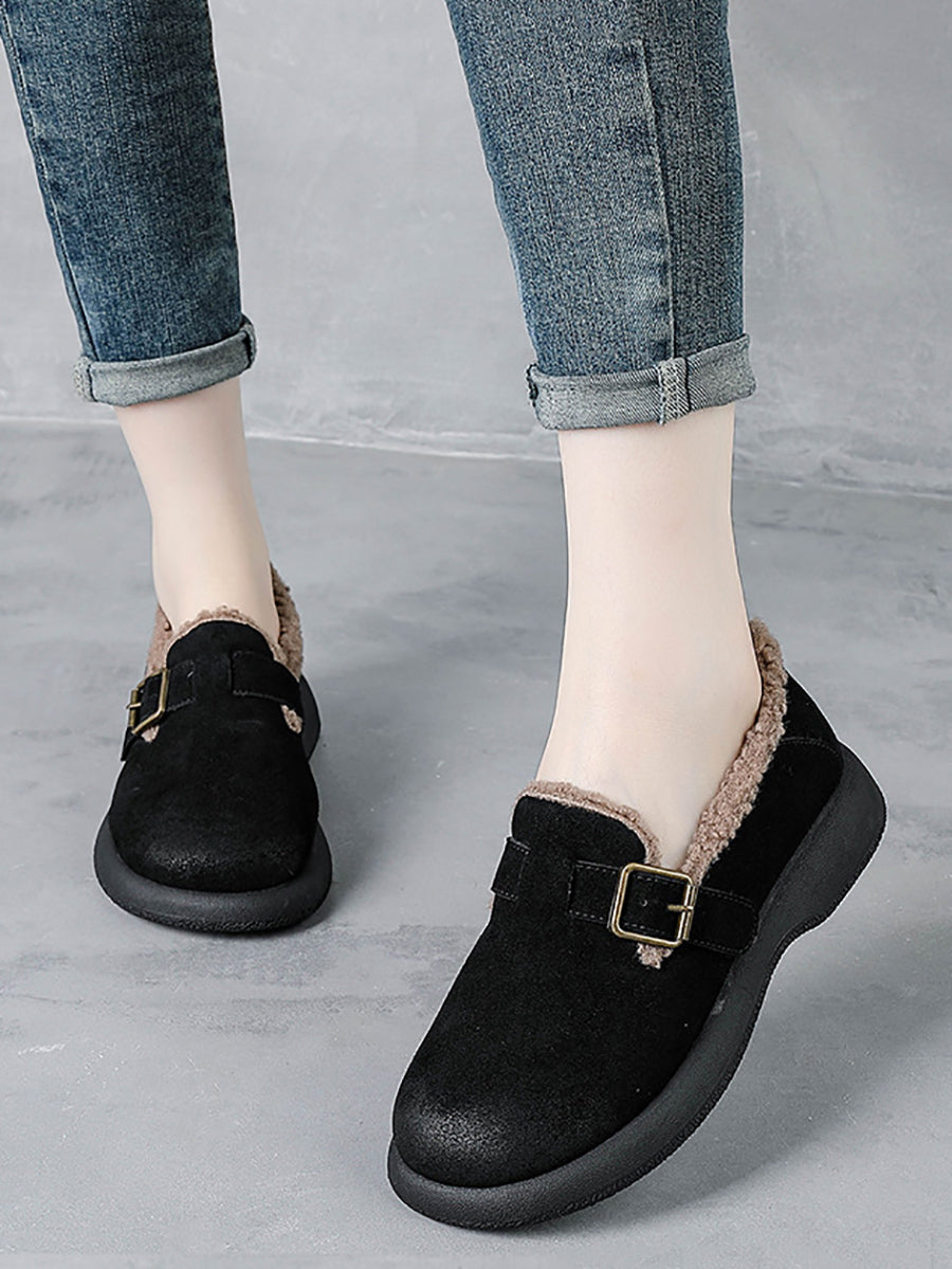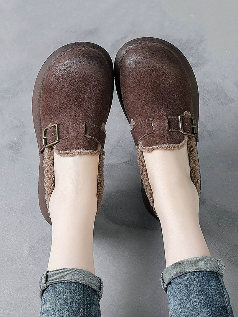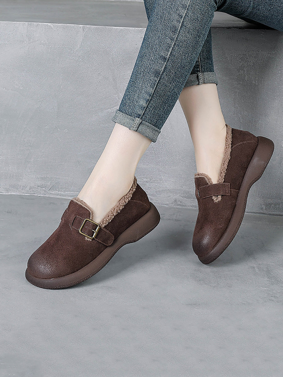 Sapatos de plataforma femininos de inverno em couro legítimo com forro de lã