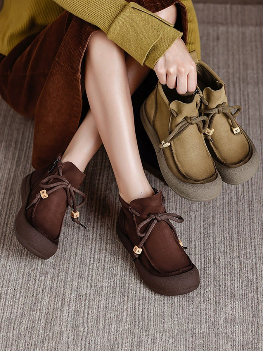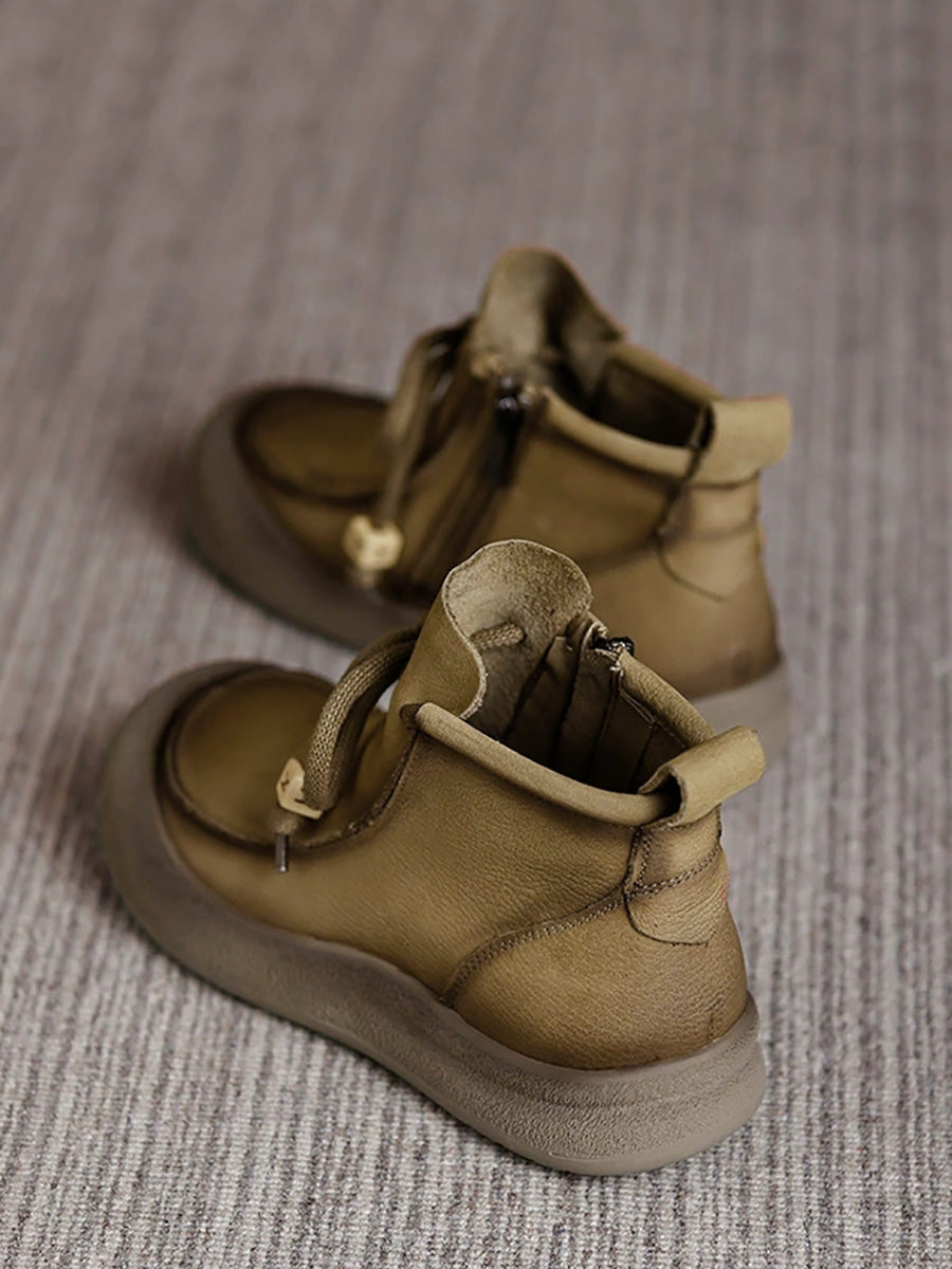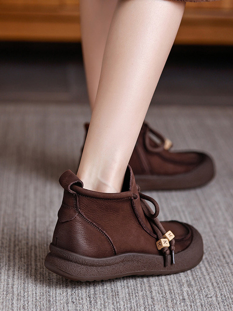 Botas femininas de inverno em couro legítimo com emendas no tornozelo