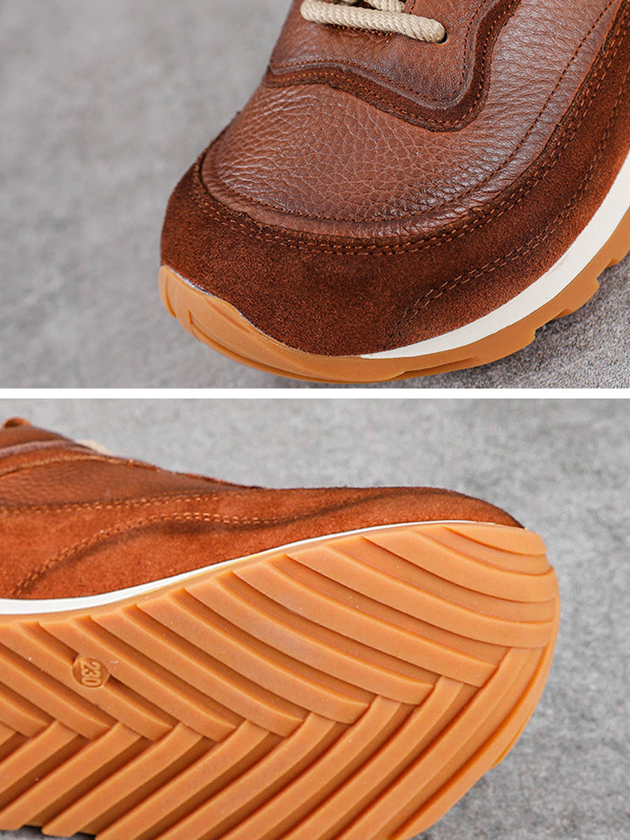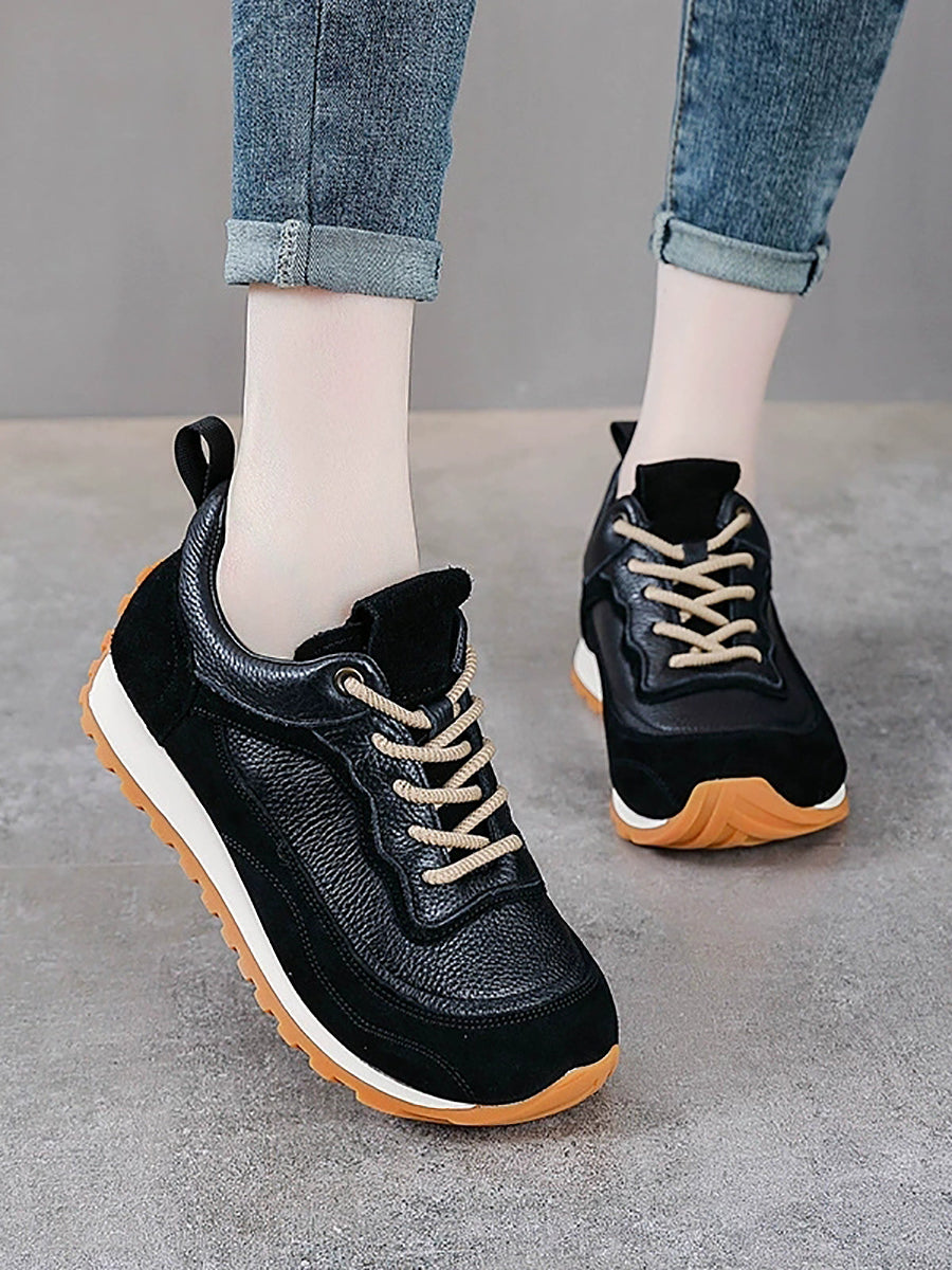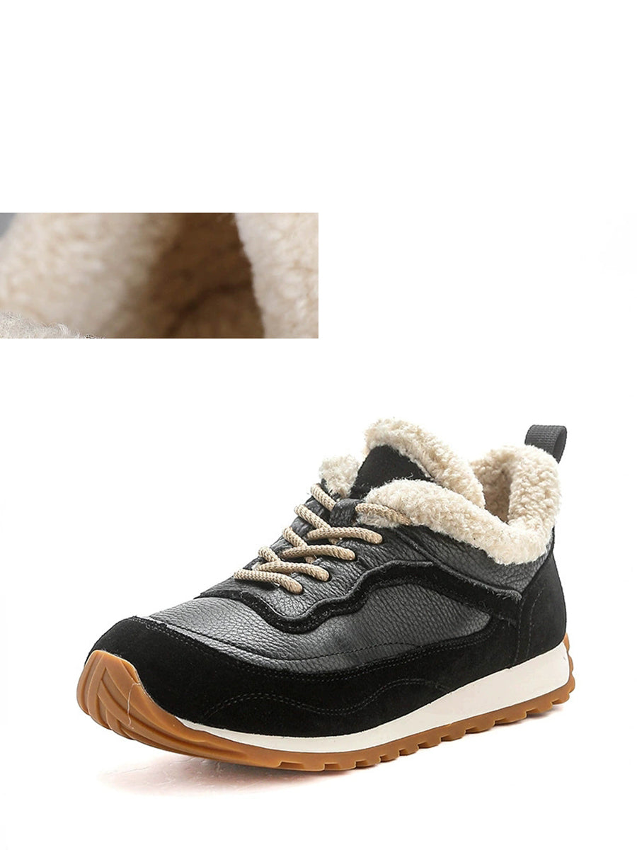 Sapatos de plataforma femininos de inverno em couro genuíno com detalhes em viés