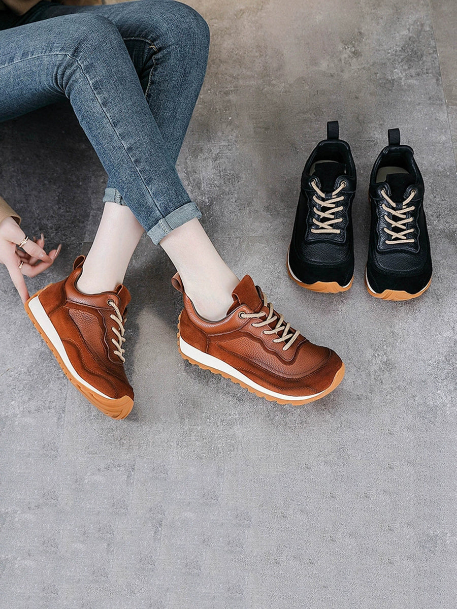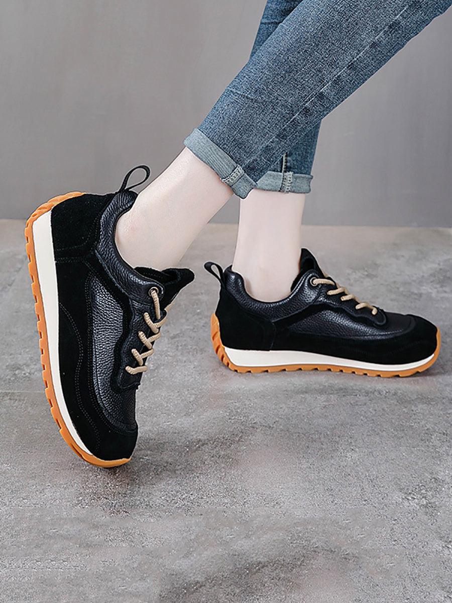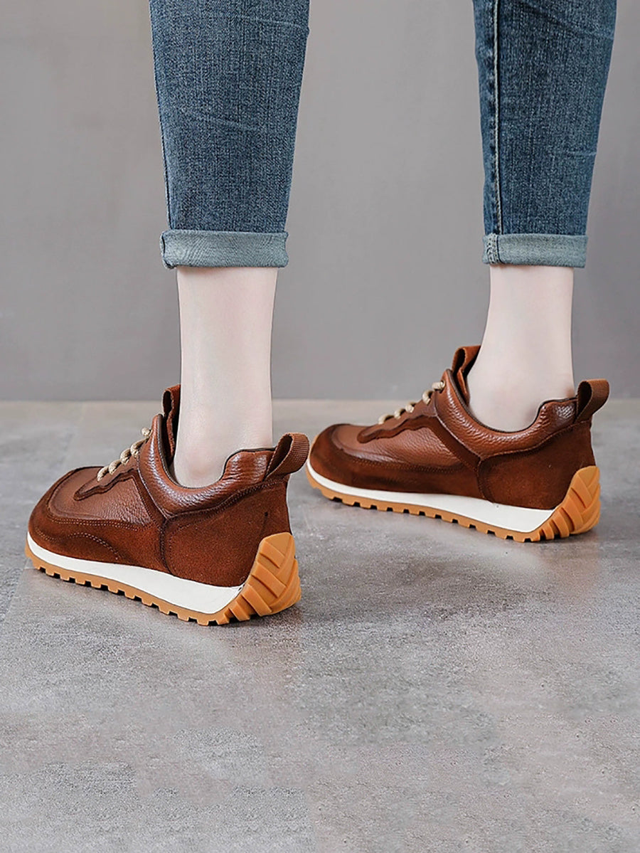 Sapatos de plataforma femininos de inverno em couro genuíno com detalhes em viés