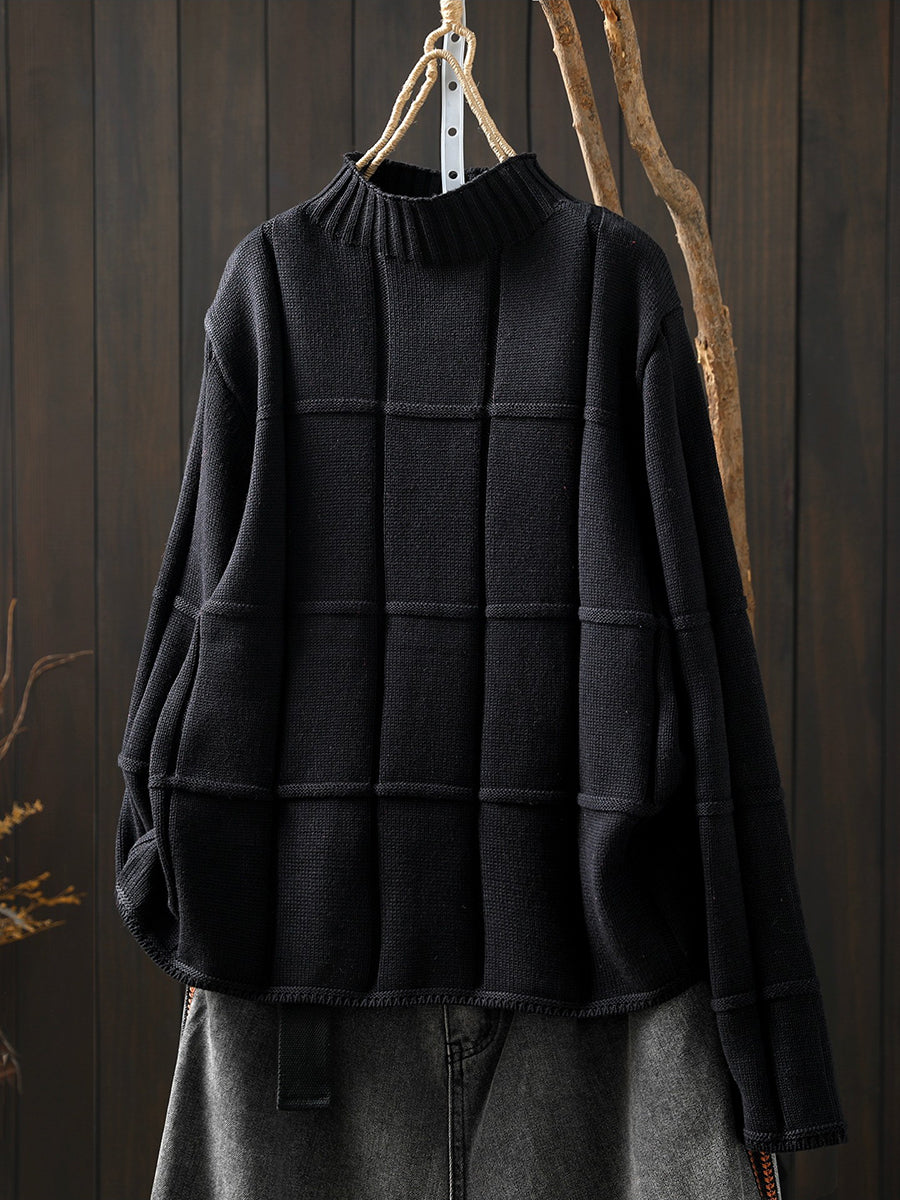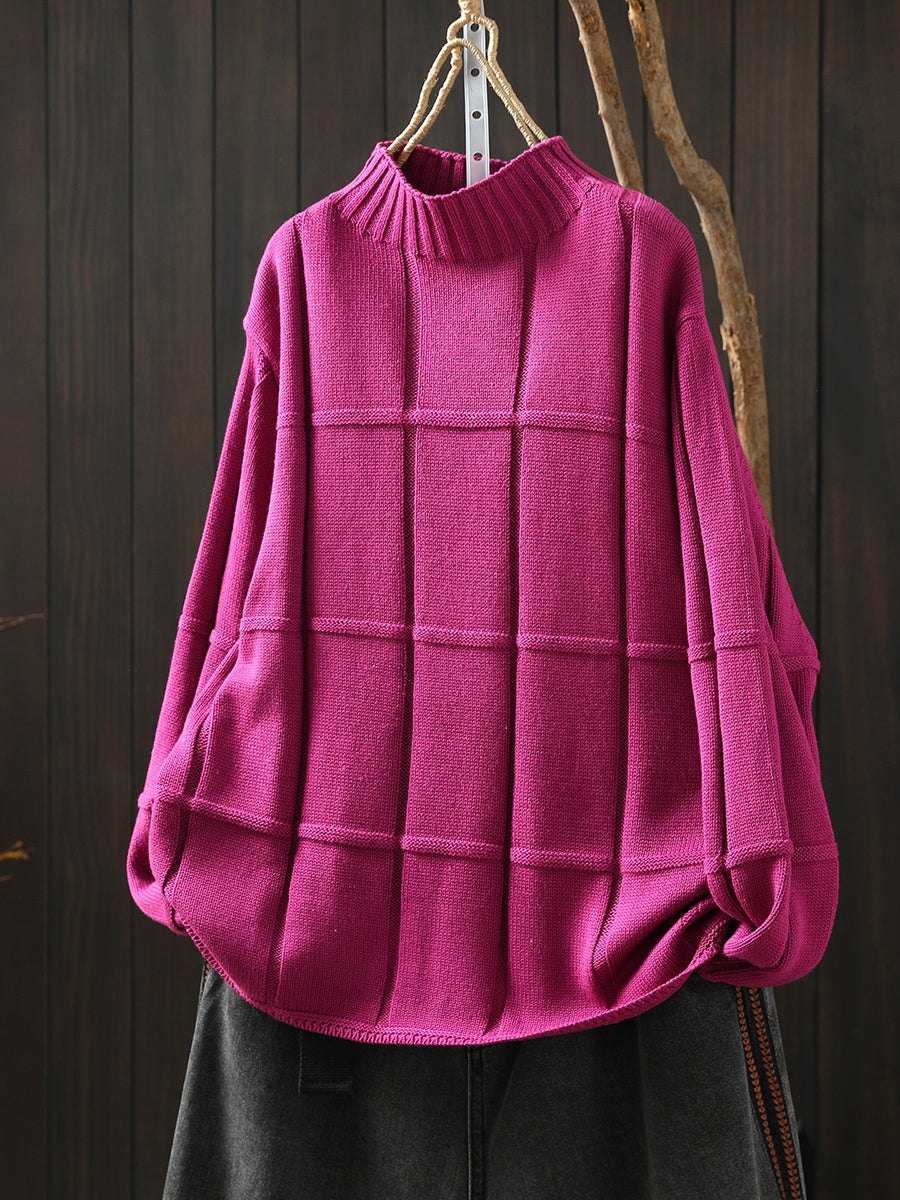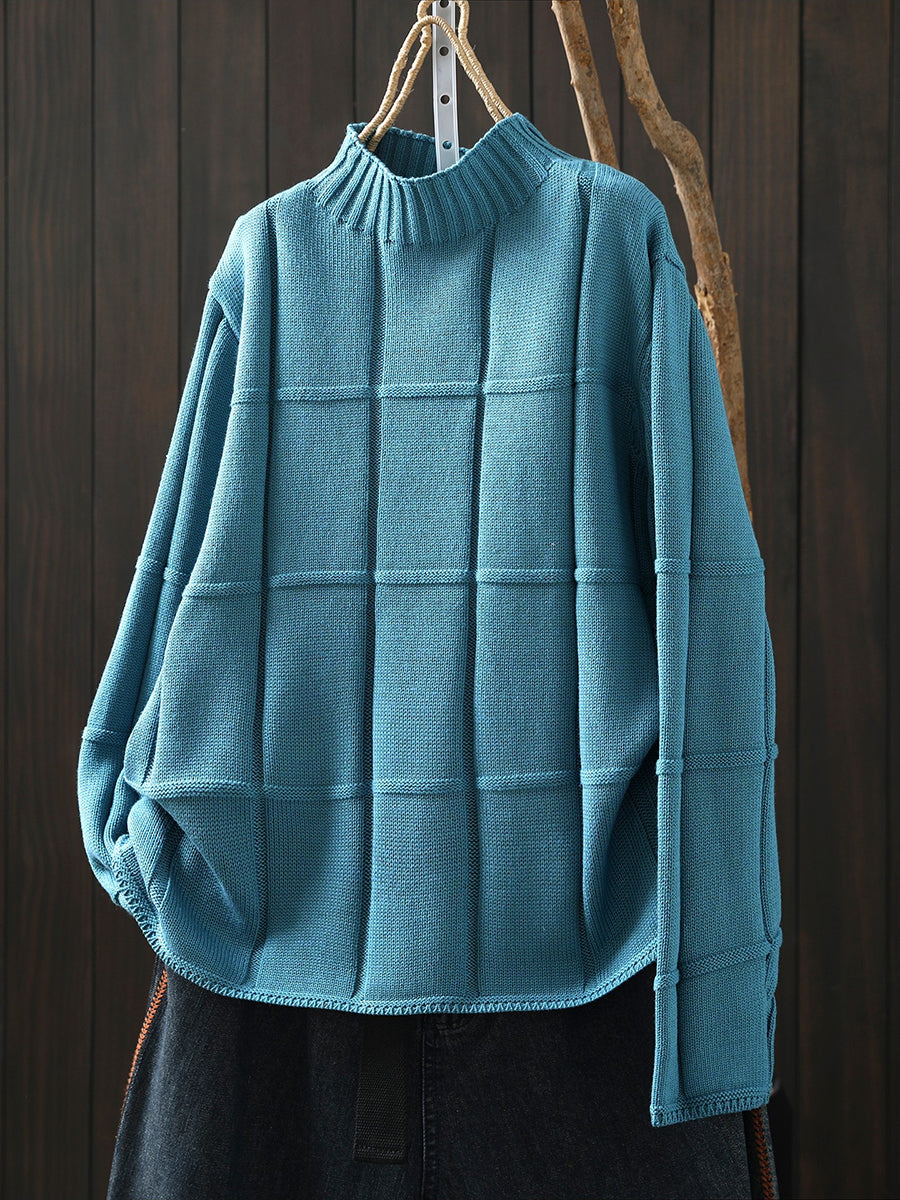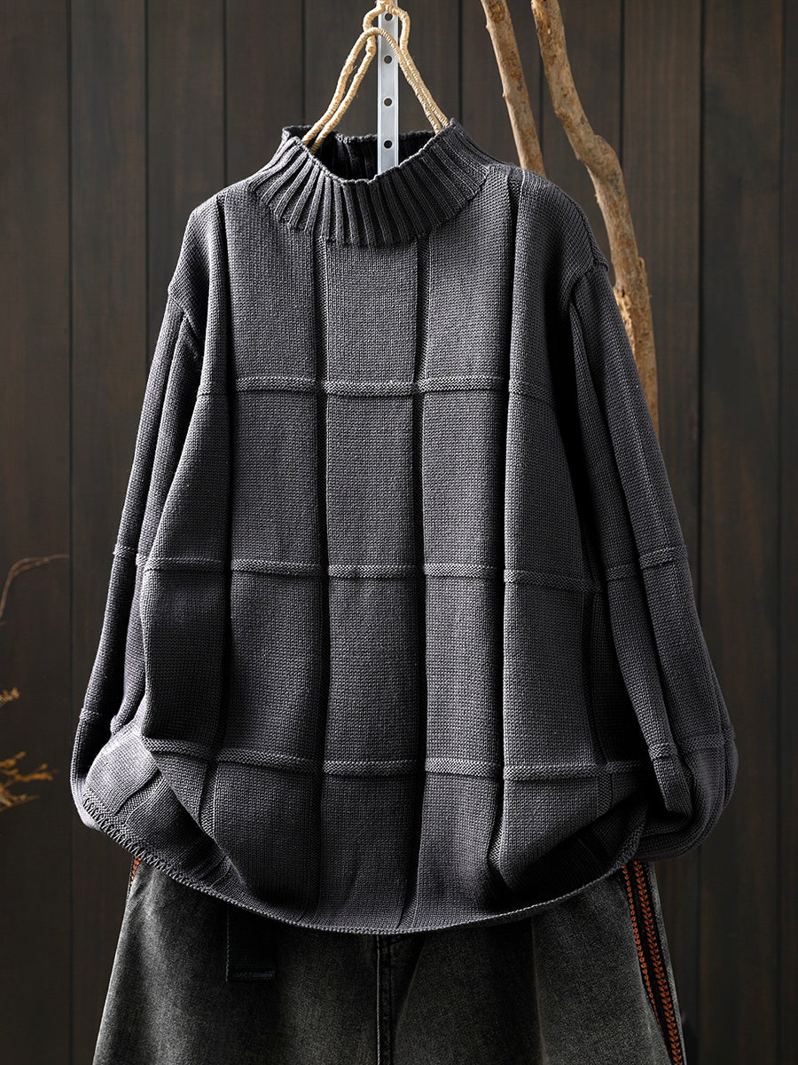 Suéter feminino de inverno em tricô, cor lisa, gola alta.