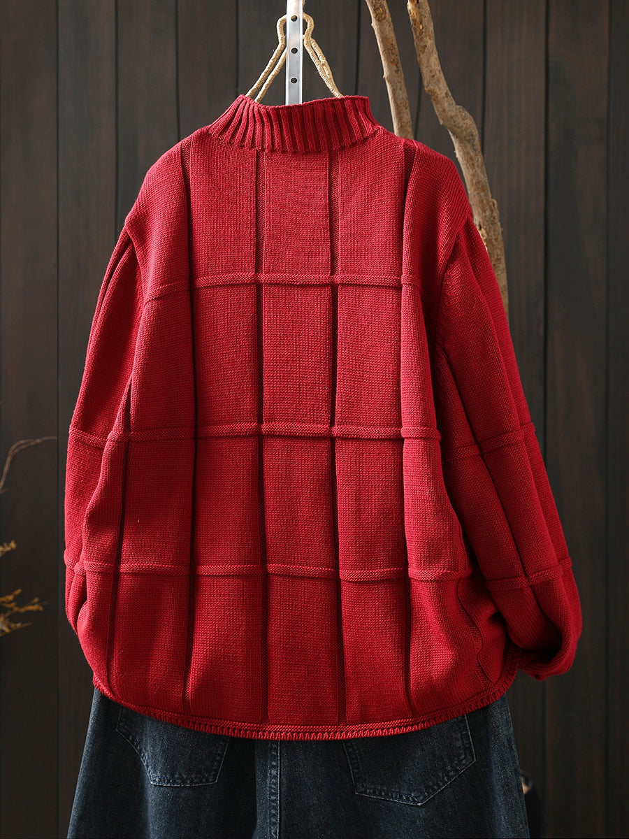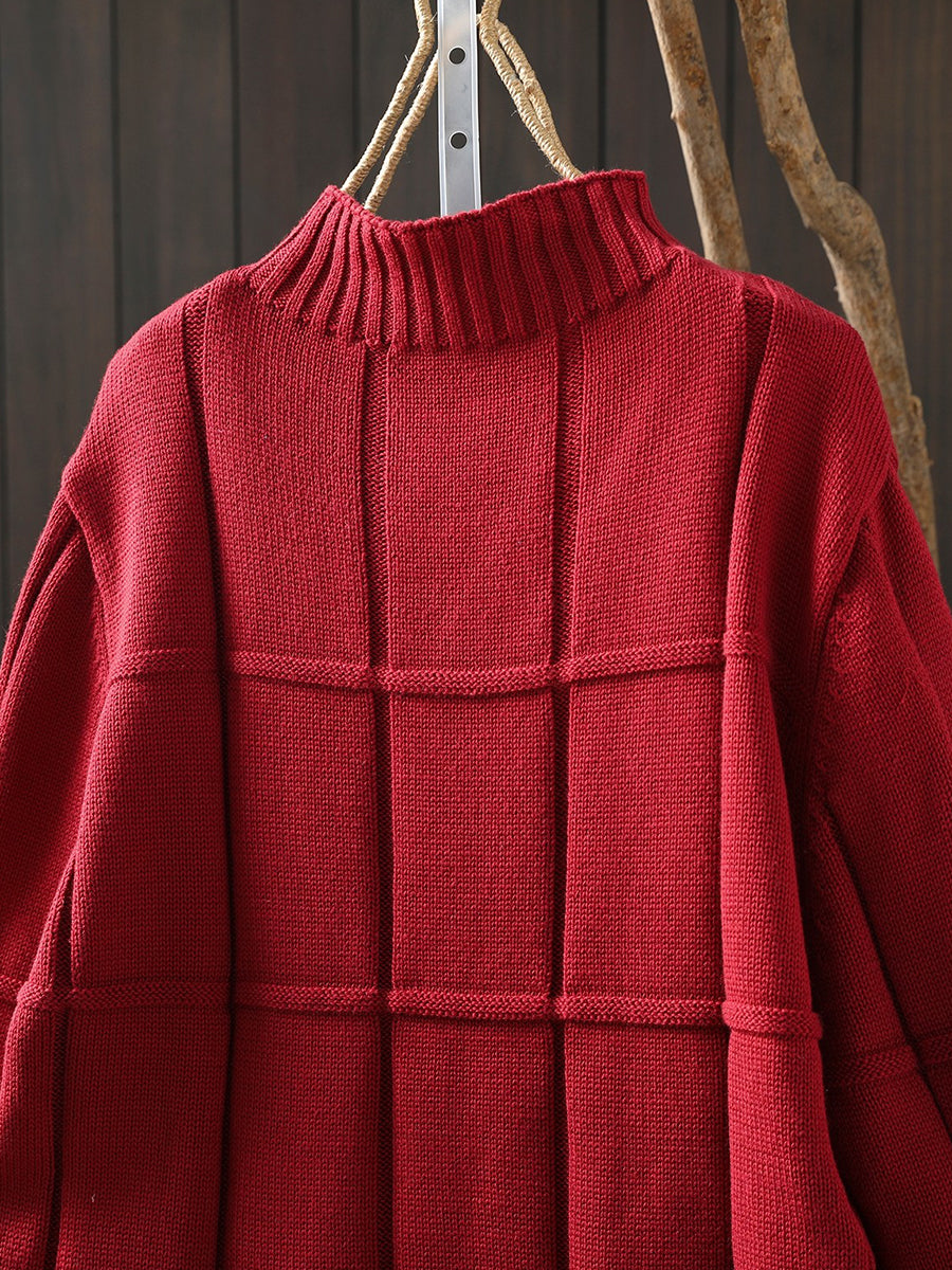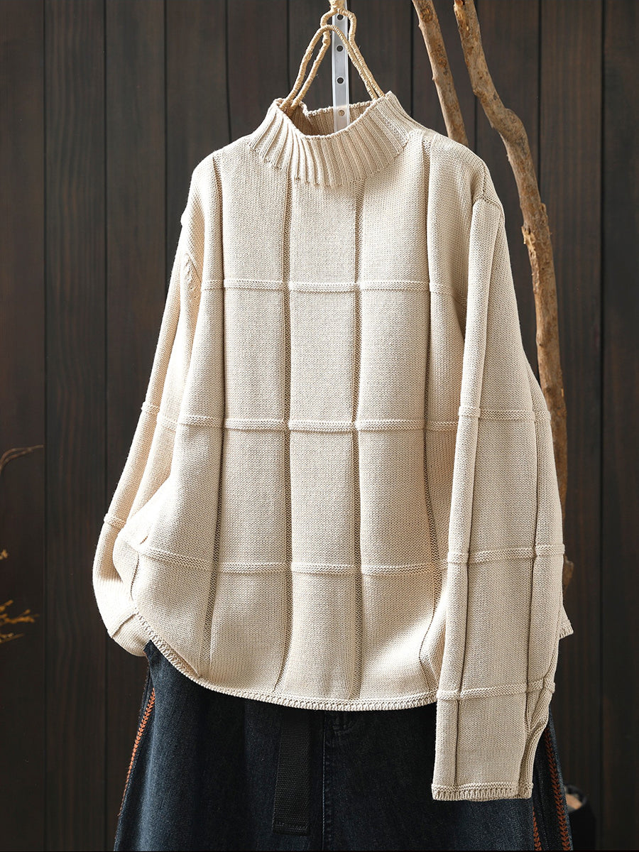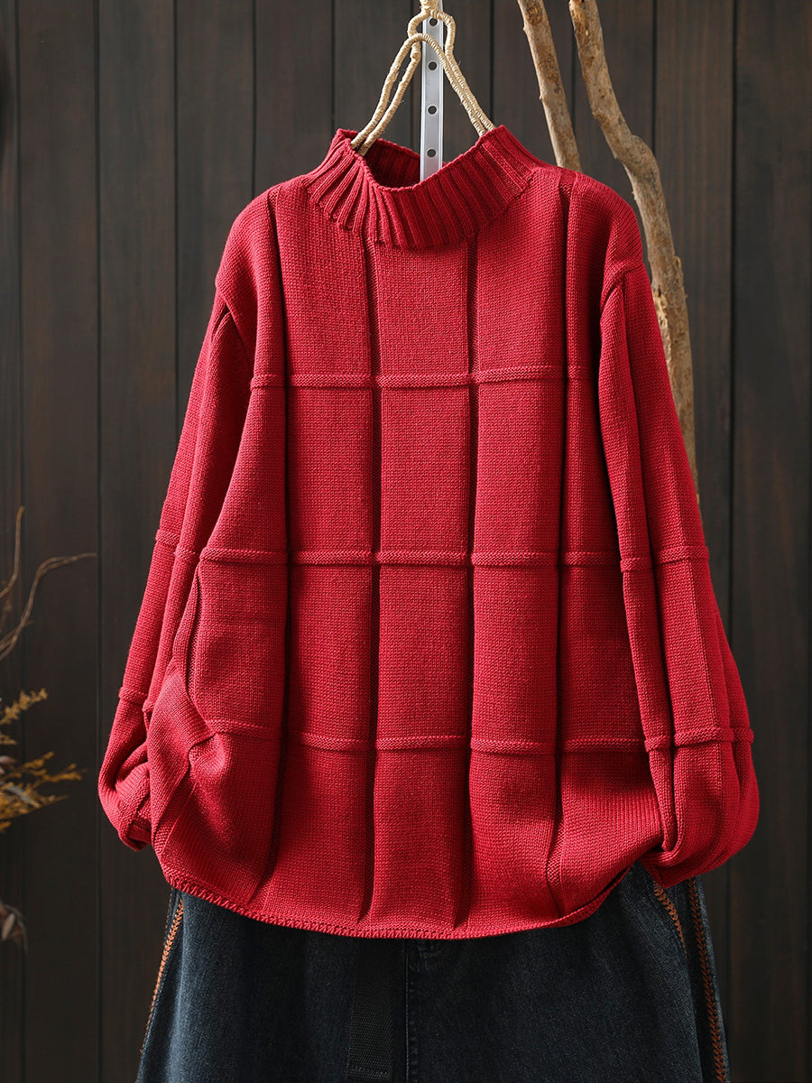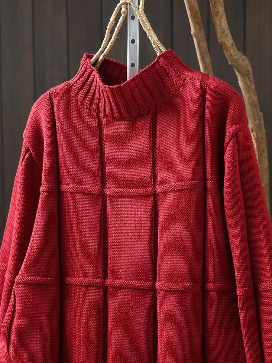 Suéter feminino de inverno em tricô, cor lisa, gola alta.