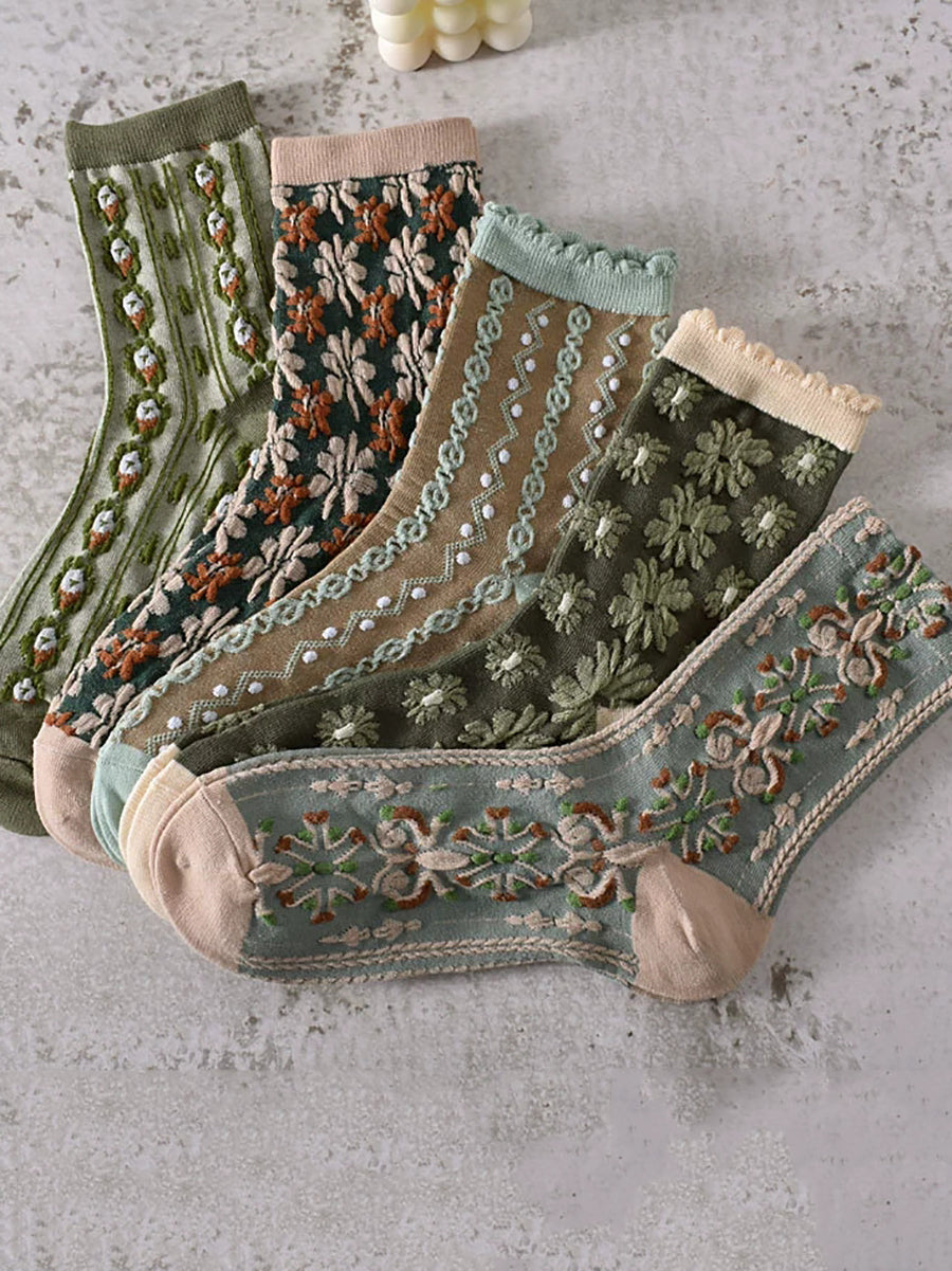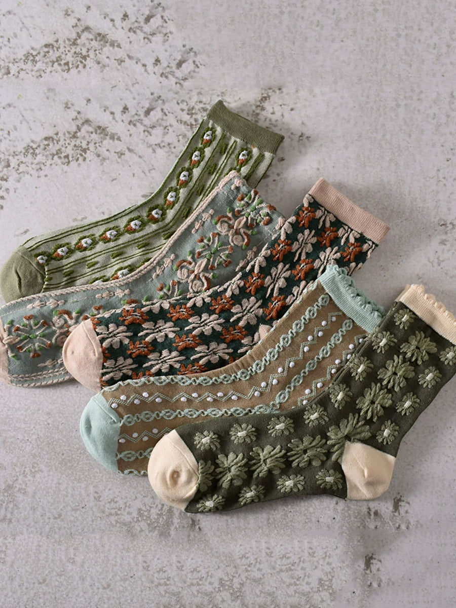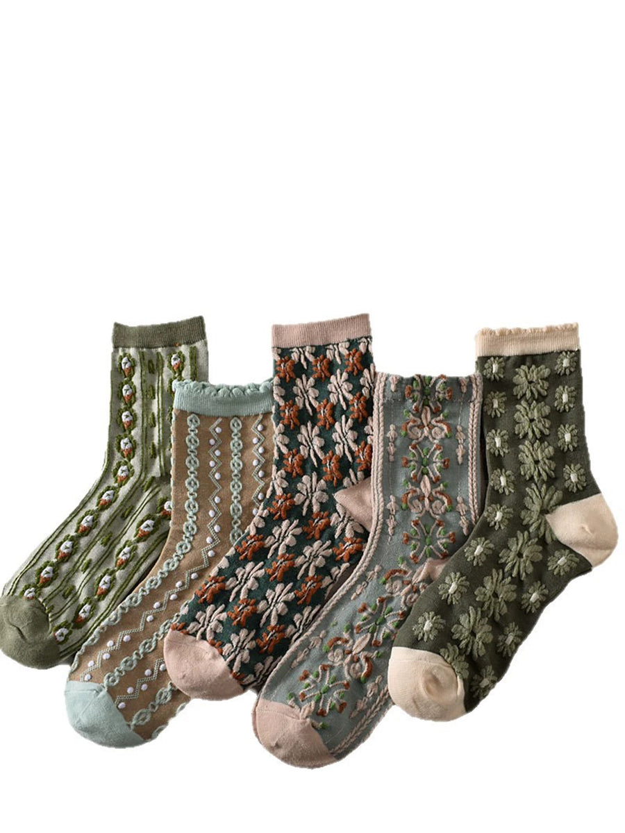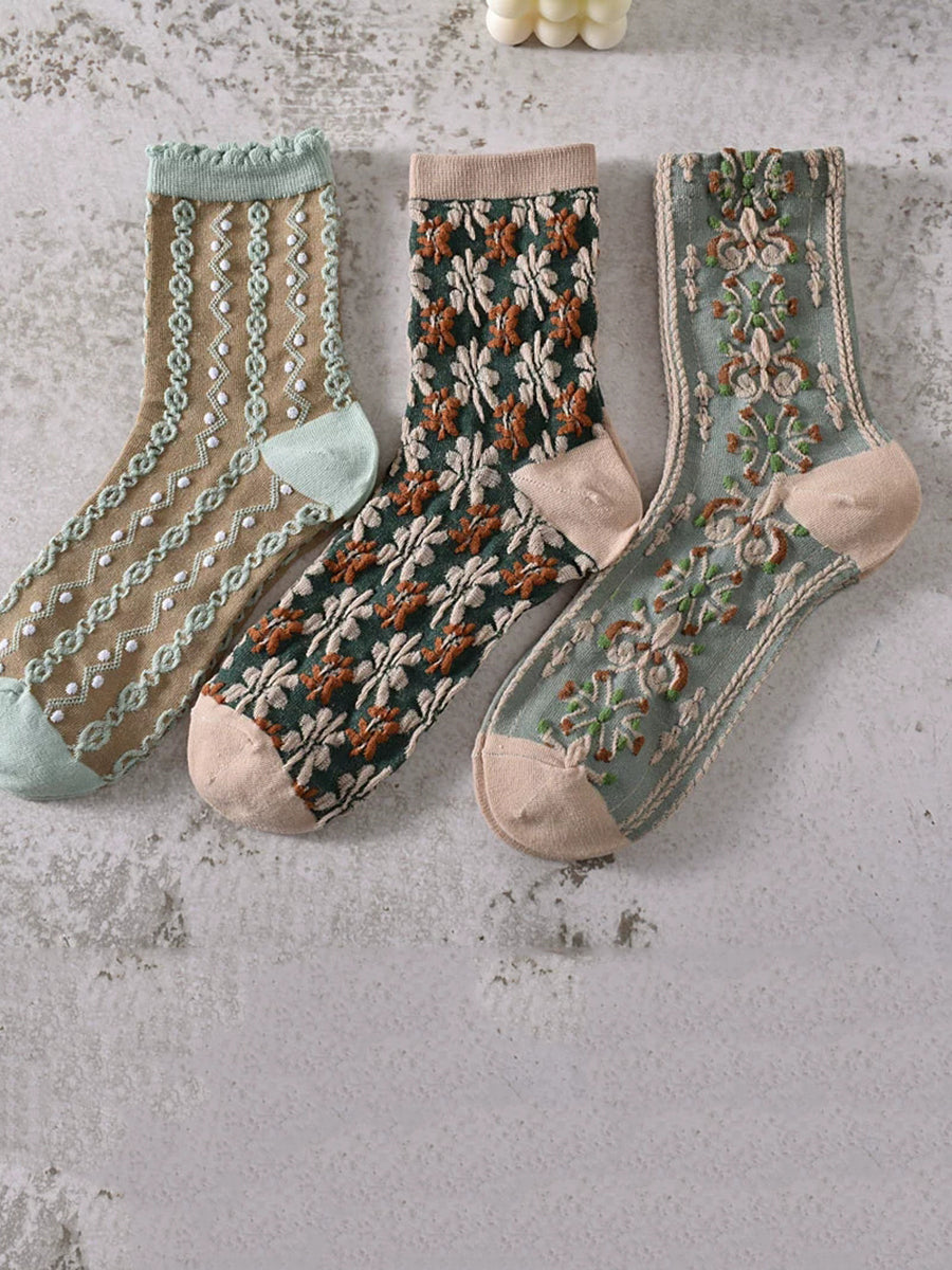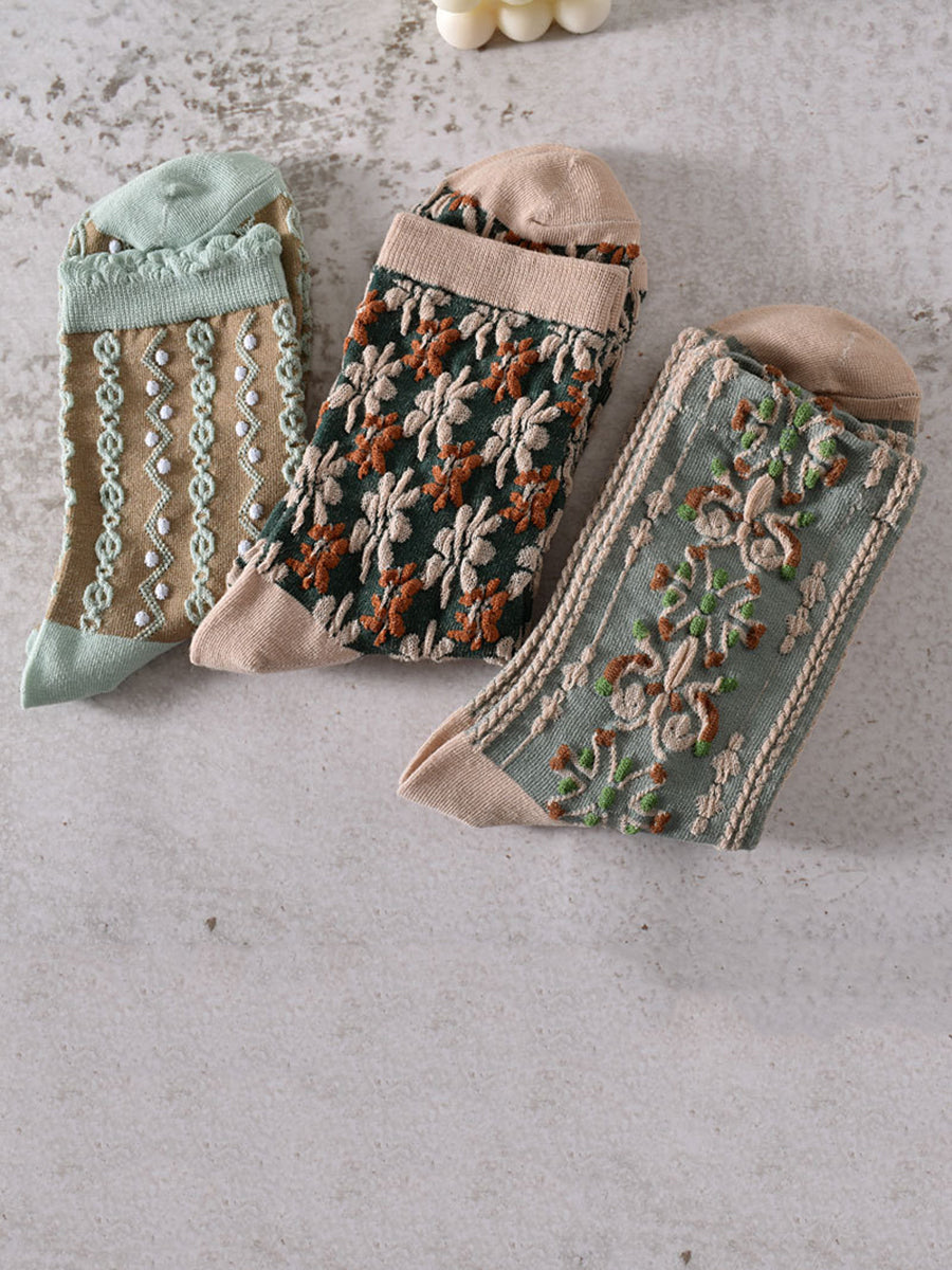 Meias femininas de inverno com estampa floral retrô em jacquard.
