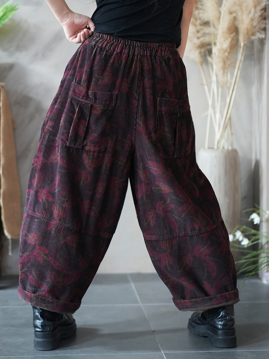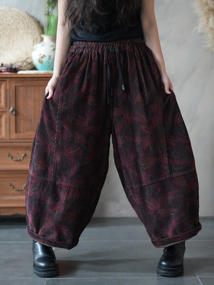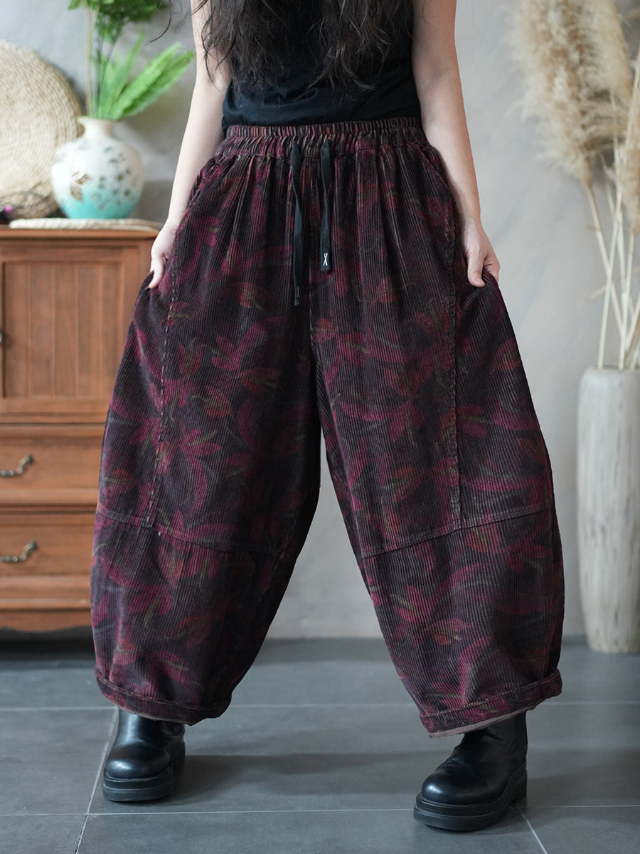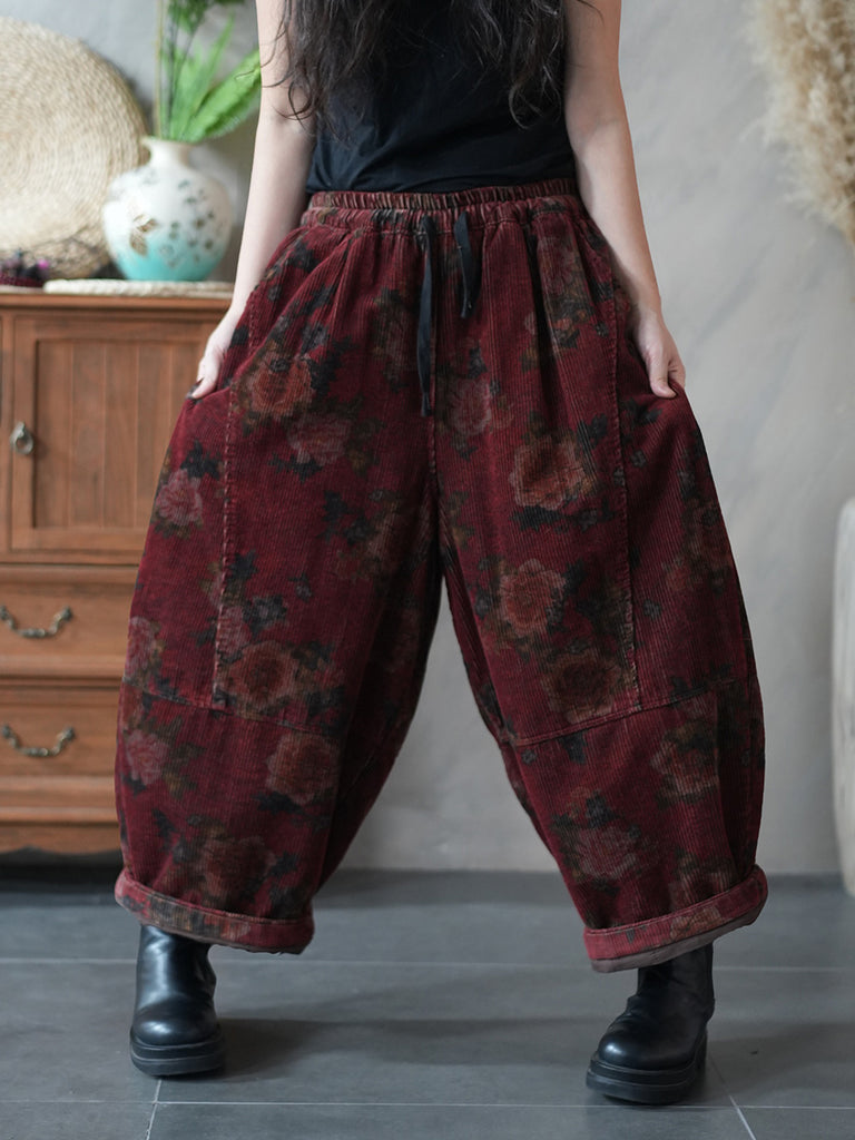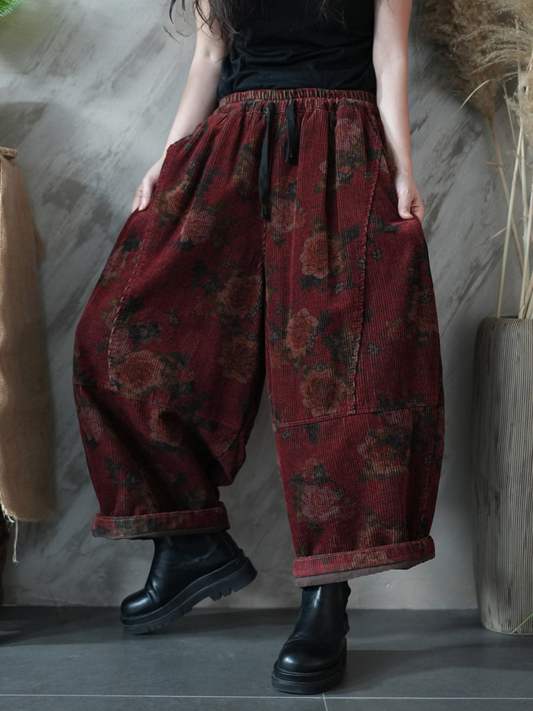 Calça Harem Acolchoada Floral Retrô Feminina de Inverno