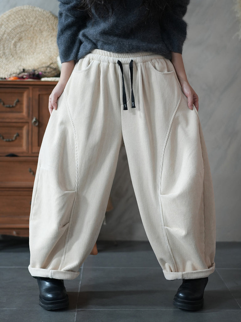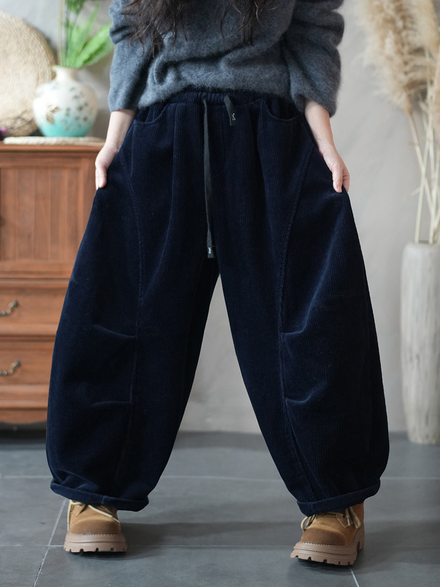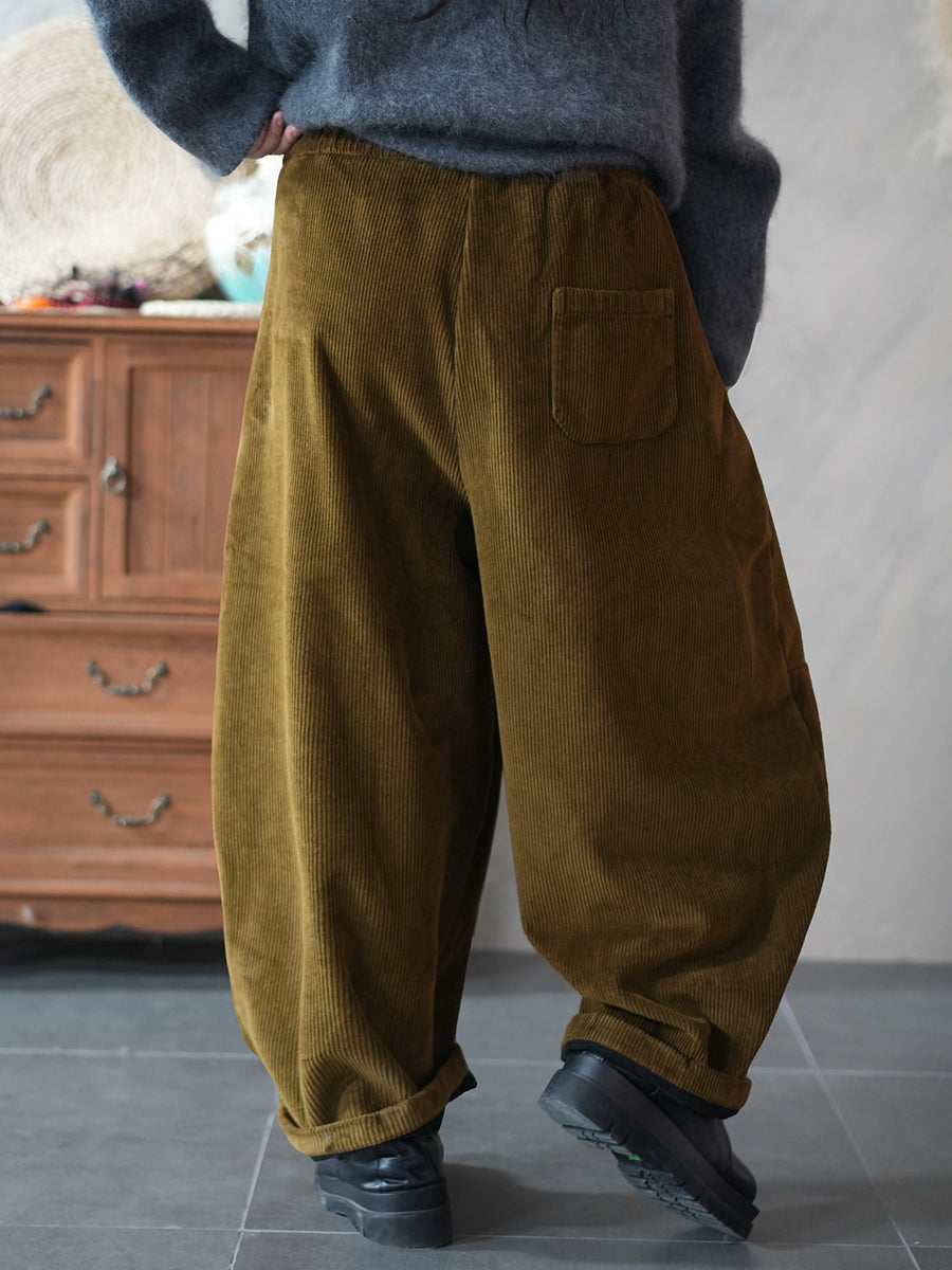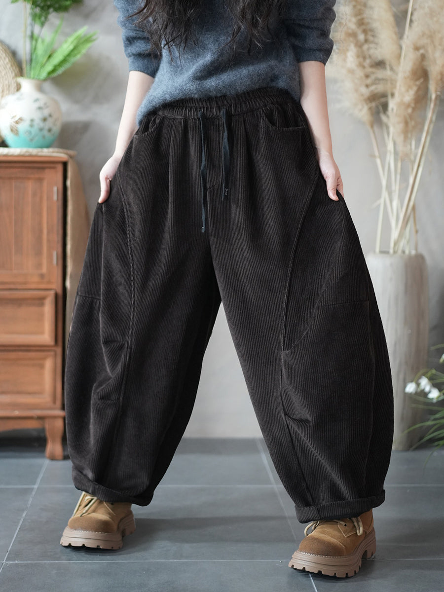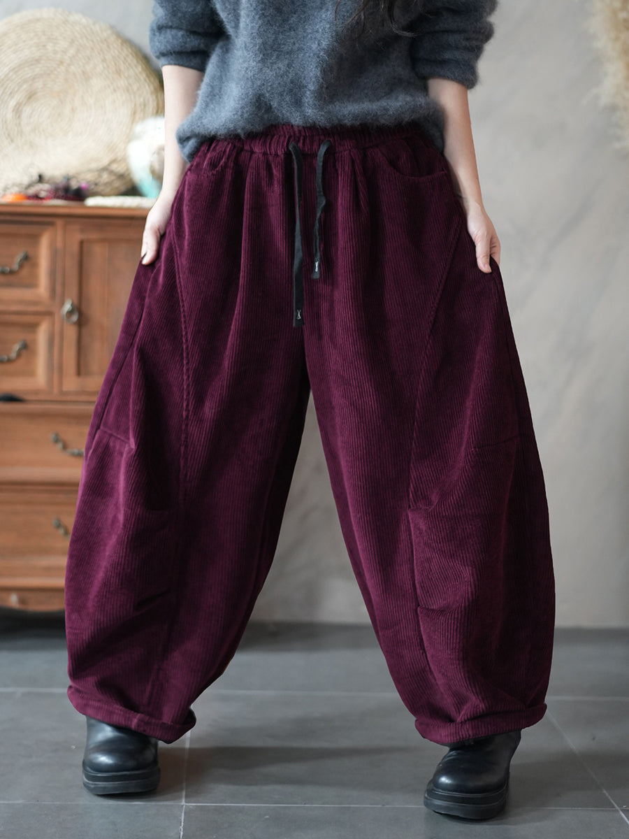 Calça Harem Feminina de Veludo Cotelê Retrô de Cor Lisa para Inverno