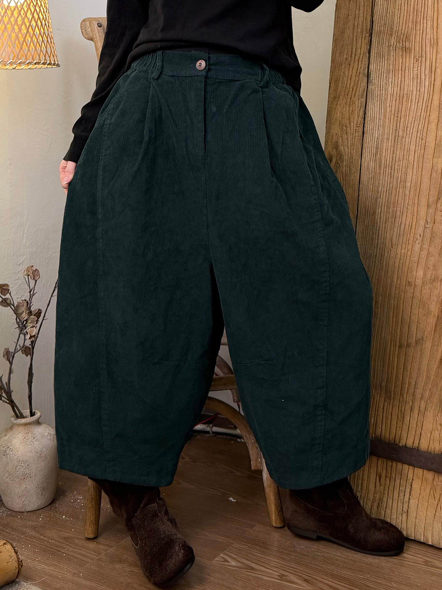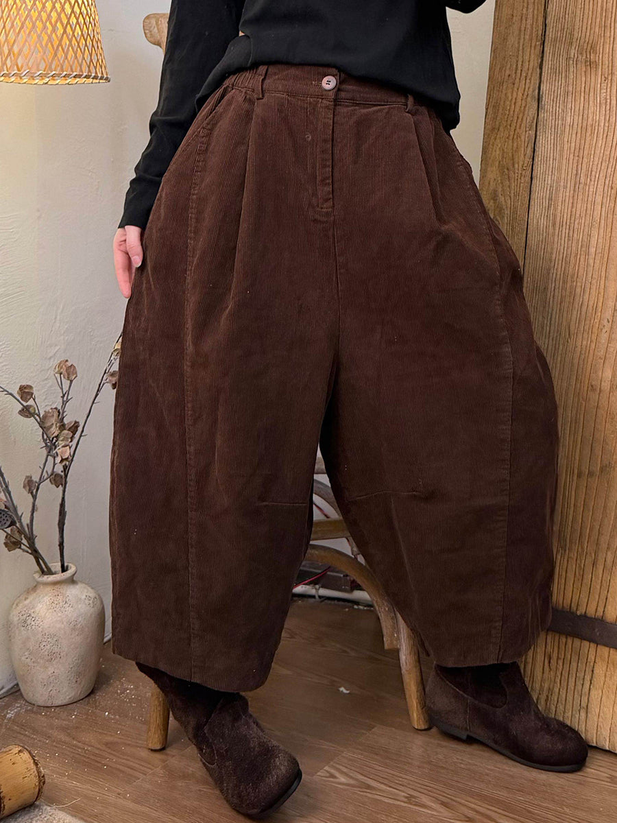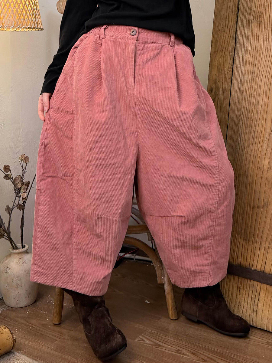 Calça Harem Feminina de Veludo Cotelê Retrô de Cor Lisa para Inverno