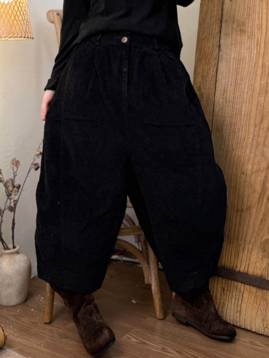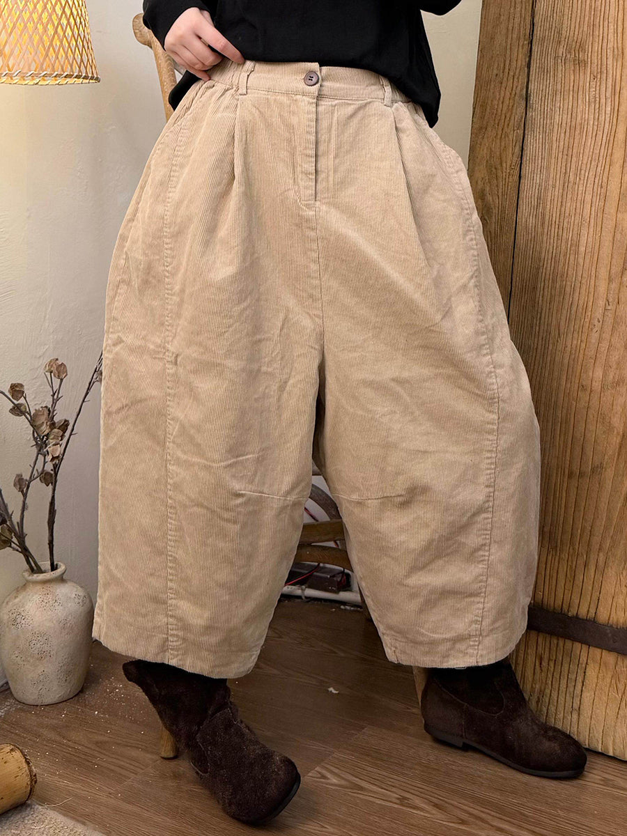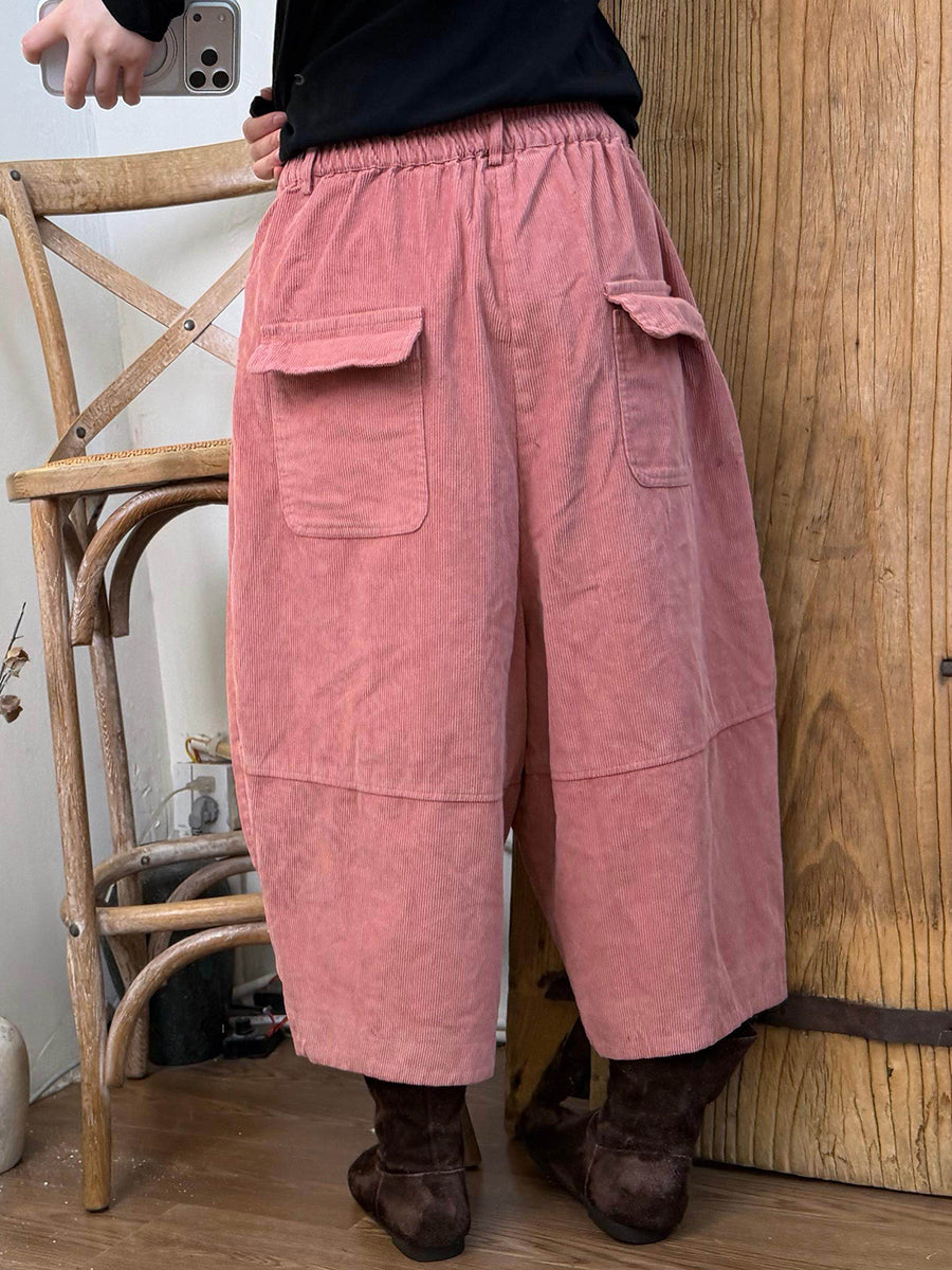 Calça Harem Feminina de Veludo Cotelê Retrô de Cor Lisa para Inverno