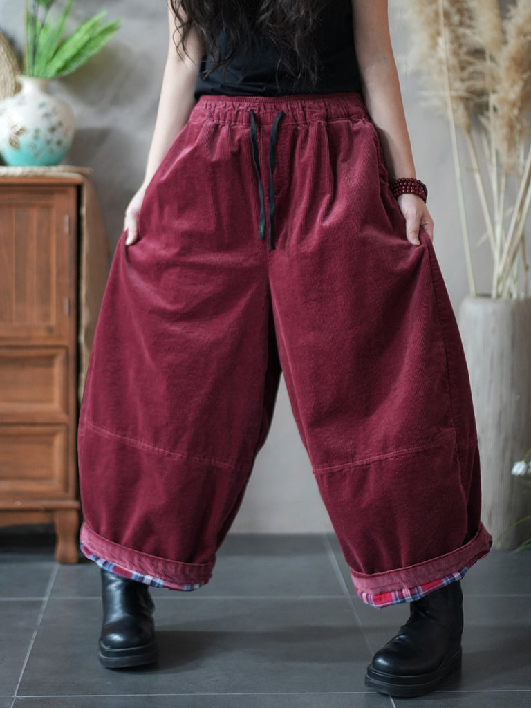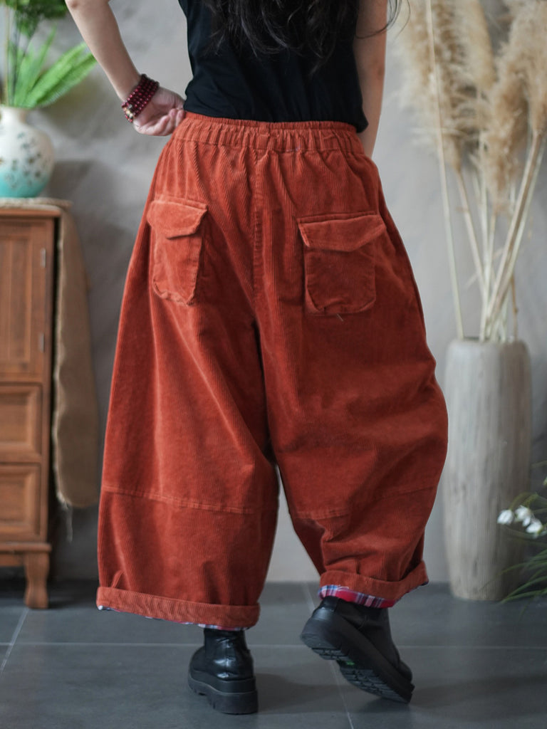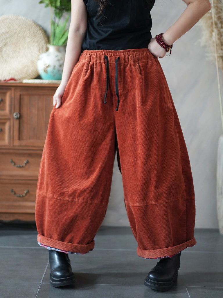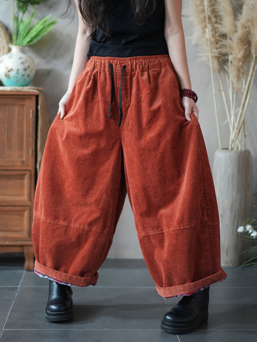 Calça feminina de inverno retrô de veludo cotelê, cor lisa, pernas largas