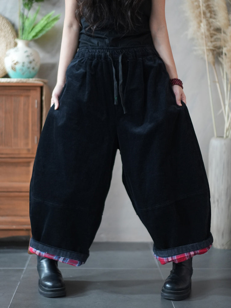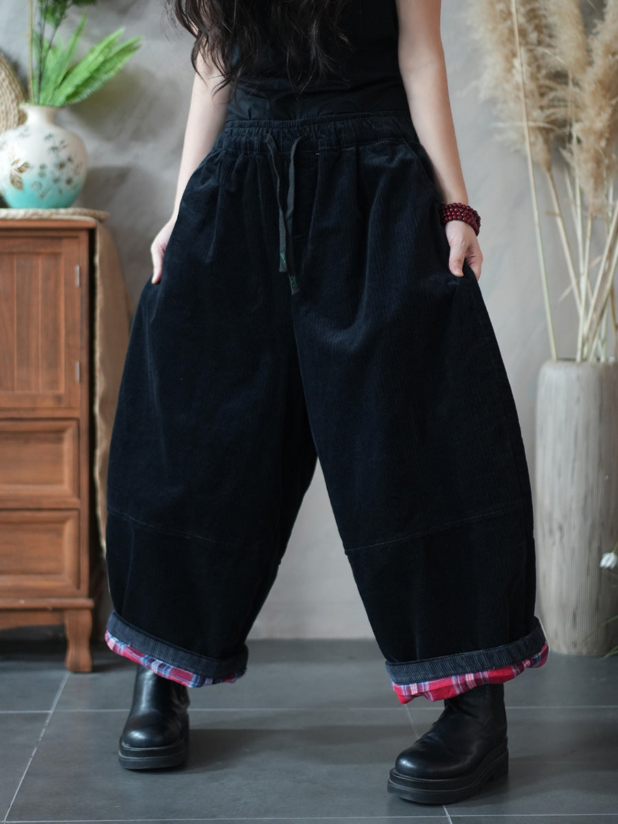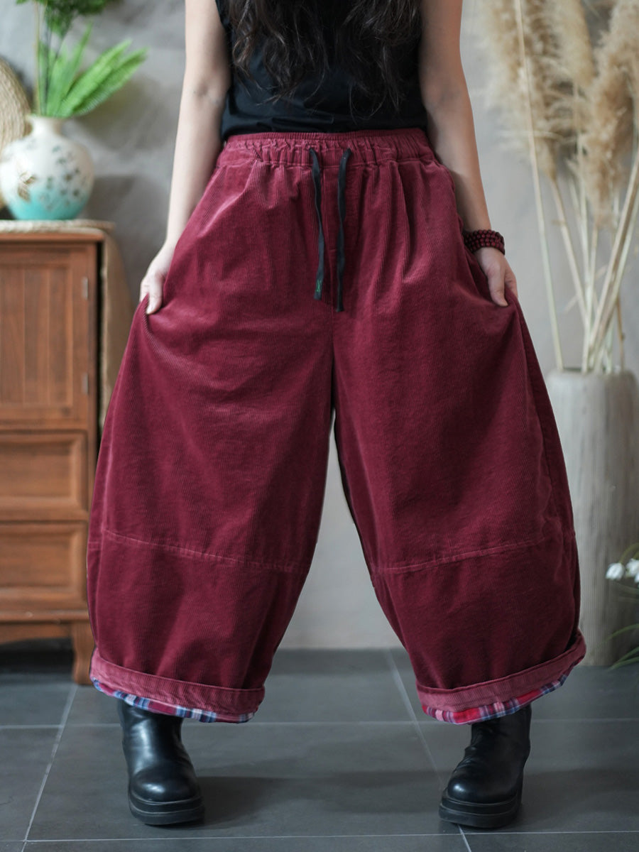 Calça feminina de inverno retrô de veludo cotelê, cor lisa, pernas largas