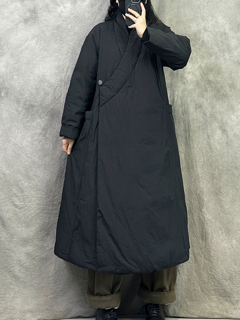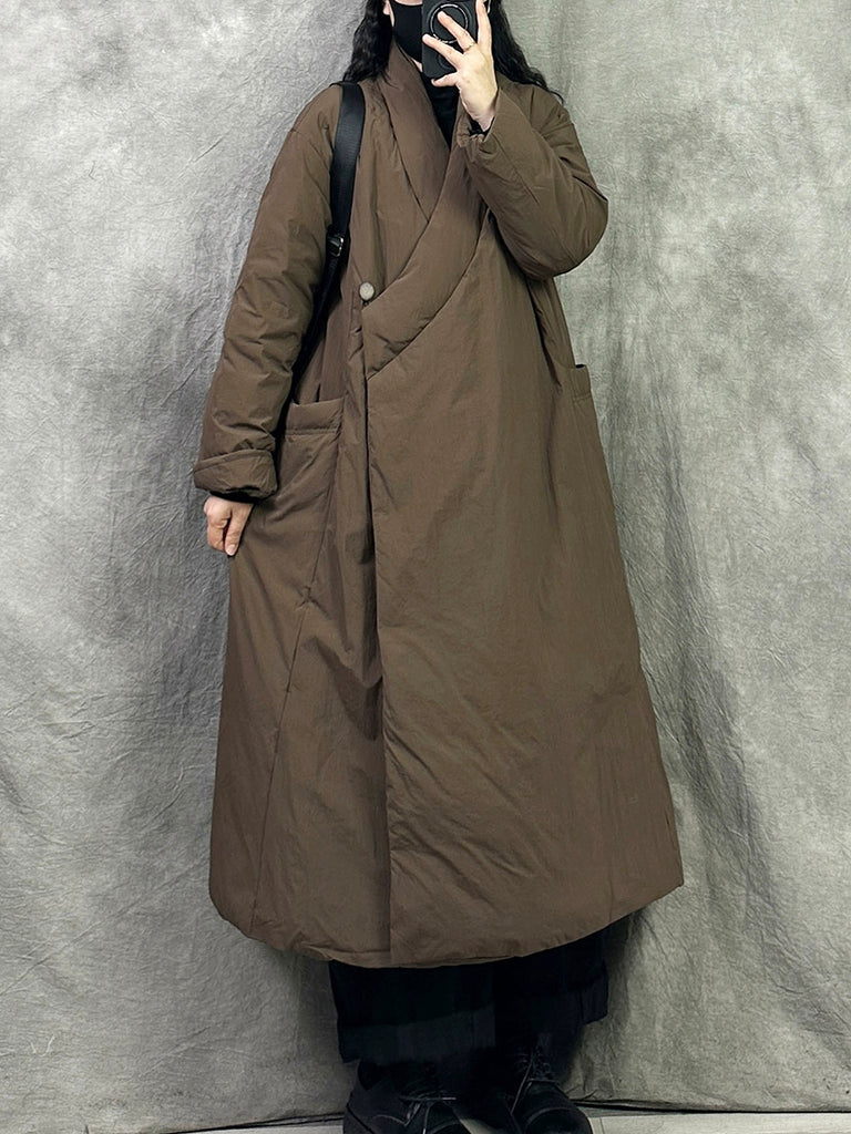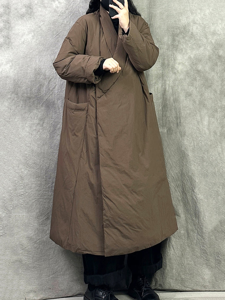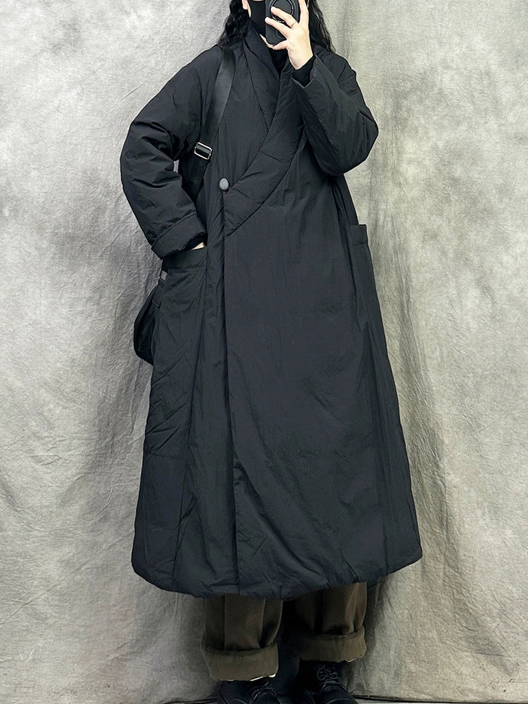 Casaco feminino de inverno retrô, cor lisa, decote em V.