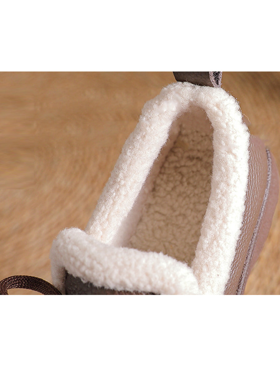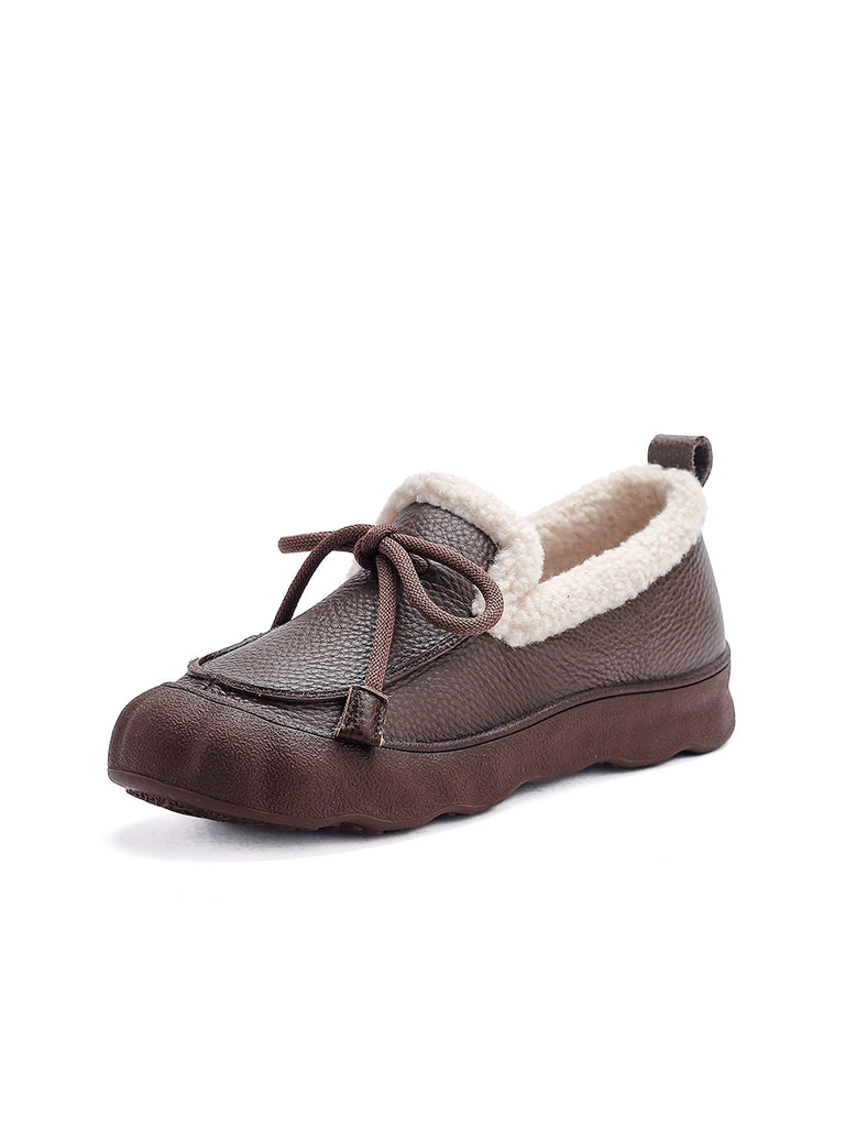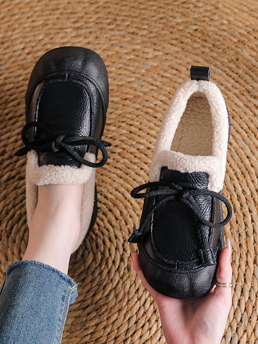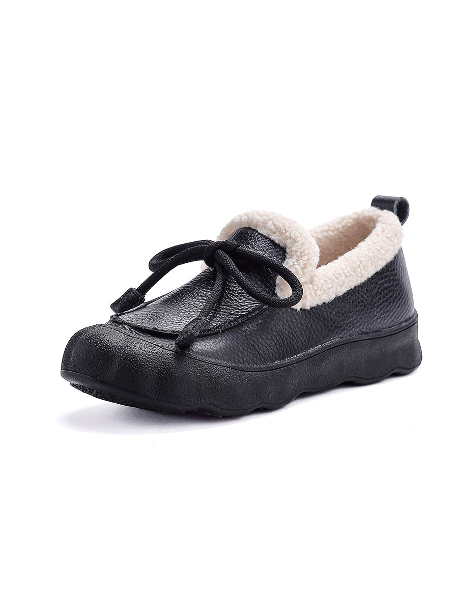 Sapatos femininos de inverno vintage em couro com forro de lã