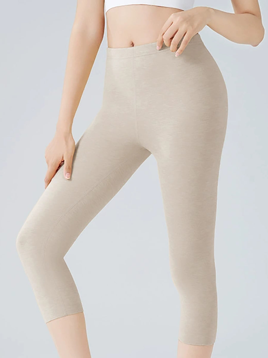 Calça legging curta feminina de inverno, quente e lisa, de cintura alta.